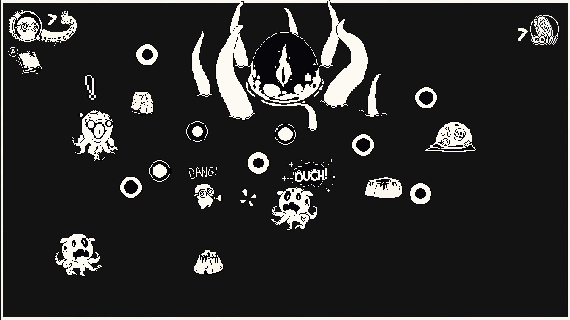 “Top-down roguelike bullet hell; fights vs. alien creatures. Controls match potato-style games. Drawn by Lovecraftian monster designs, B&W cult vibe, low barrier, smooth play. Comfortable with surprise”