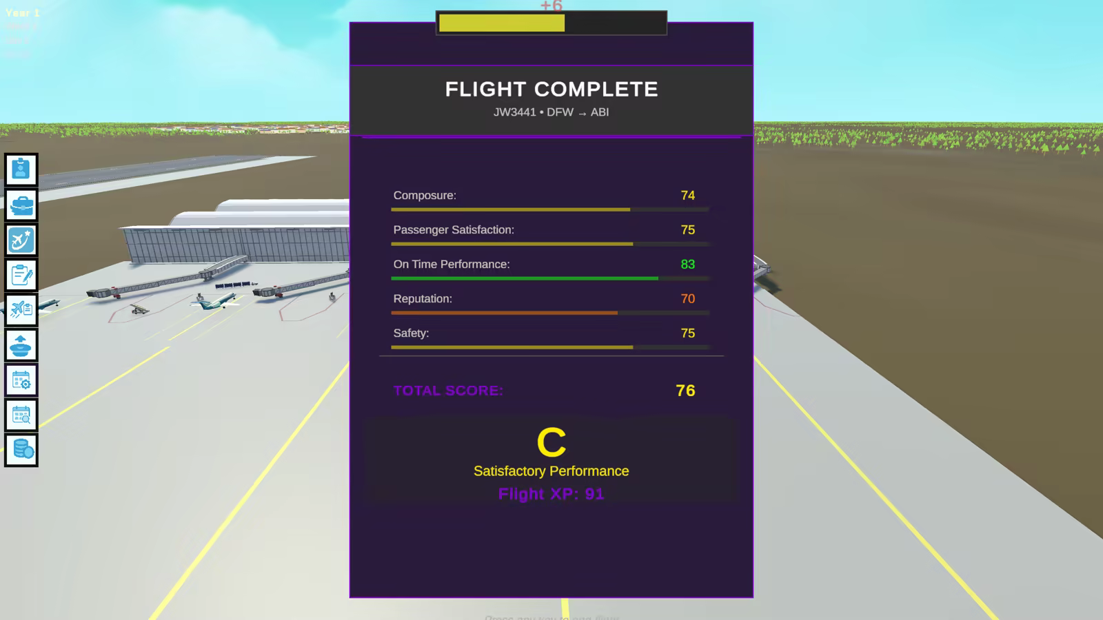 • Build five core stats as you level up that affect your career: Stick Skills, Punctuality, Professionalism, Crew Resource Management, Aircraft System Knowledge