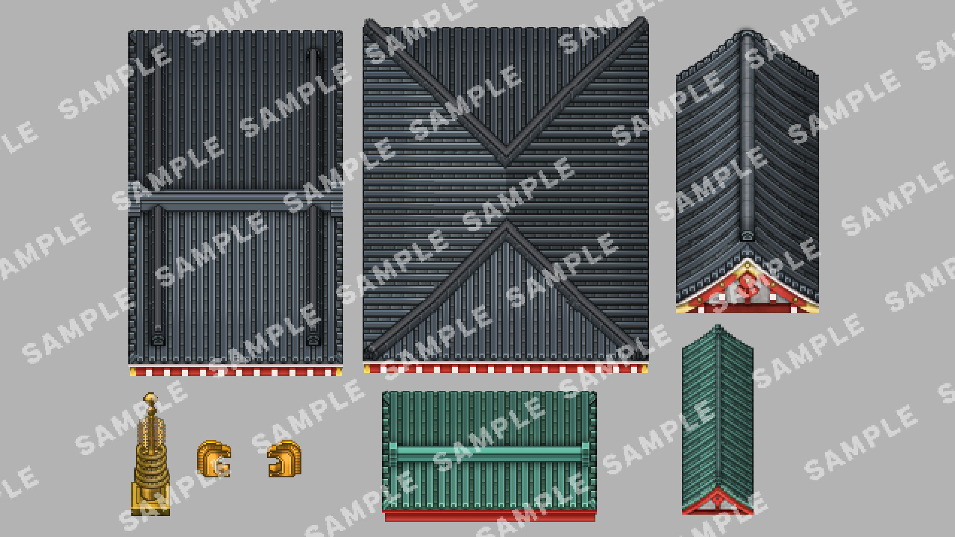 • Tile B: Buildings, roofs, shop exteriors, lanterns, bulletin boards, stone lanterns, fences, pillars, etc.