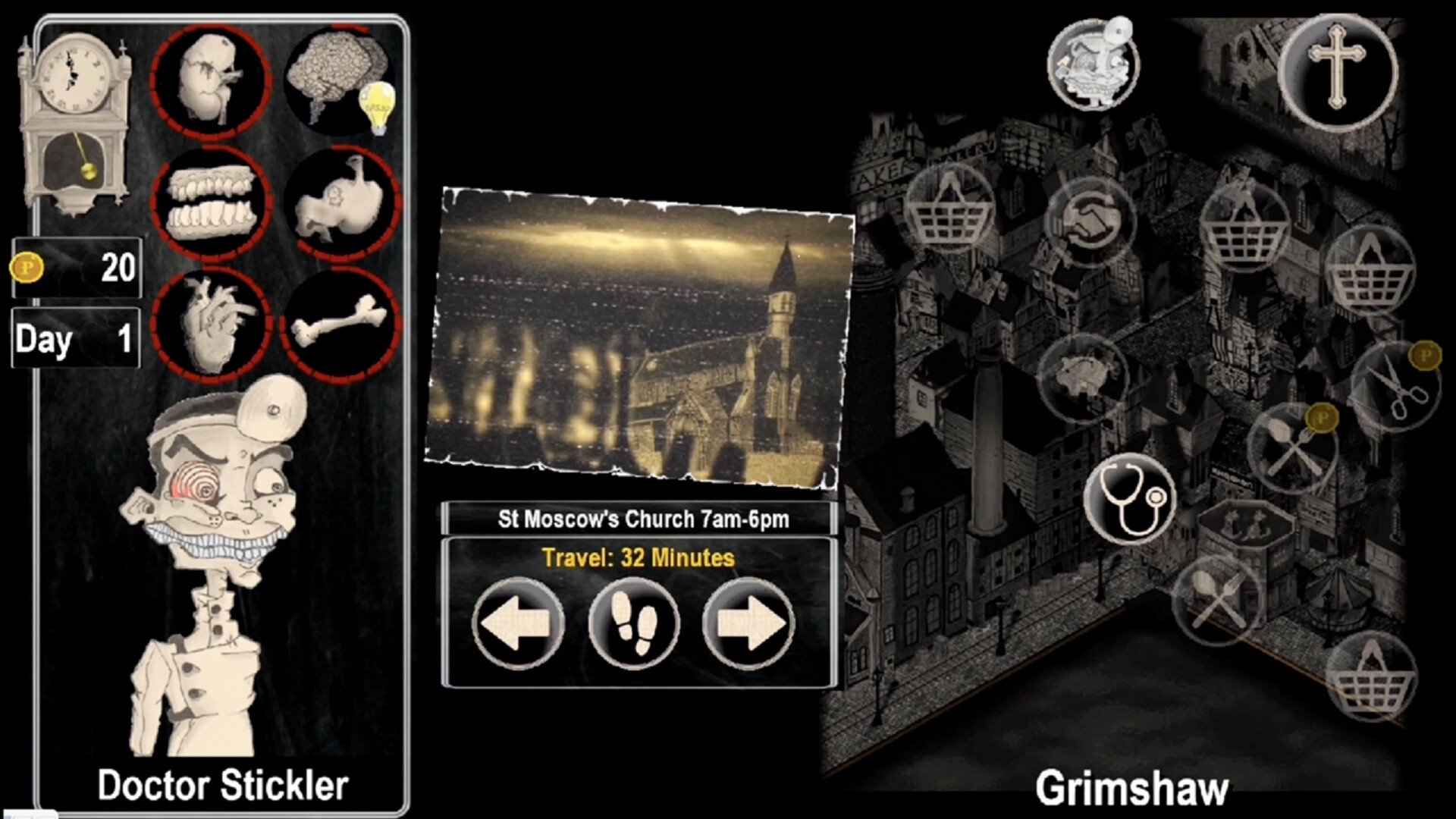 • Sandbox & Choice: Every decision matters. Players can guide Dr. Stickler to be a trusted doctor, a cunning criminal, or something in between, shaping their own path through Grimshaw.