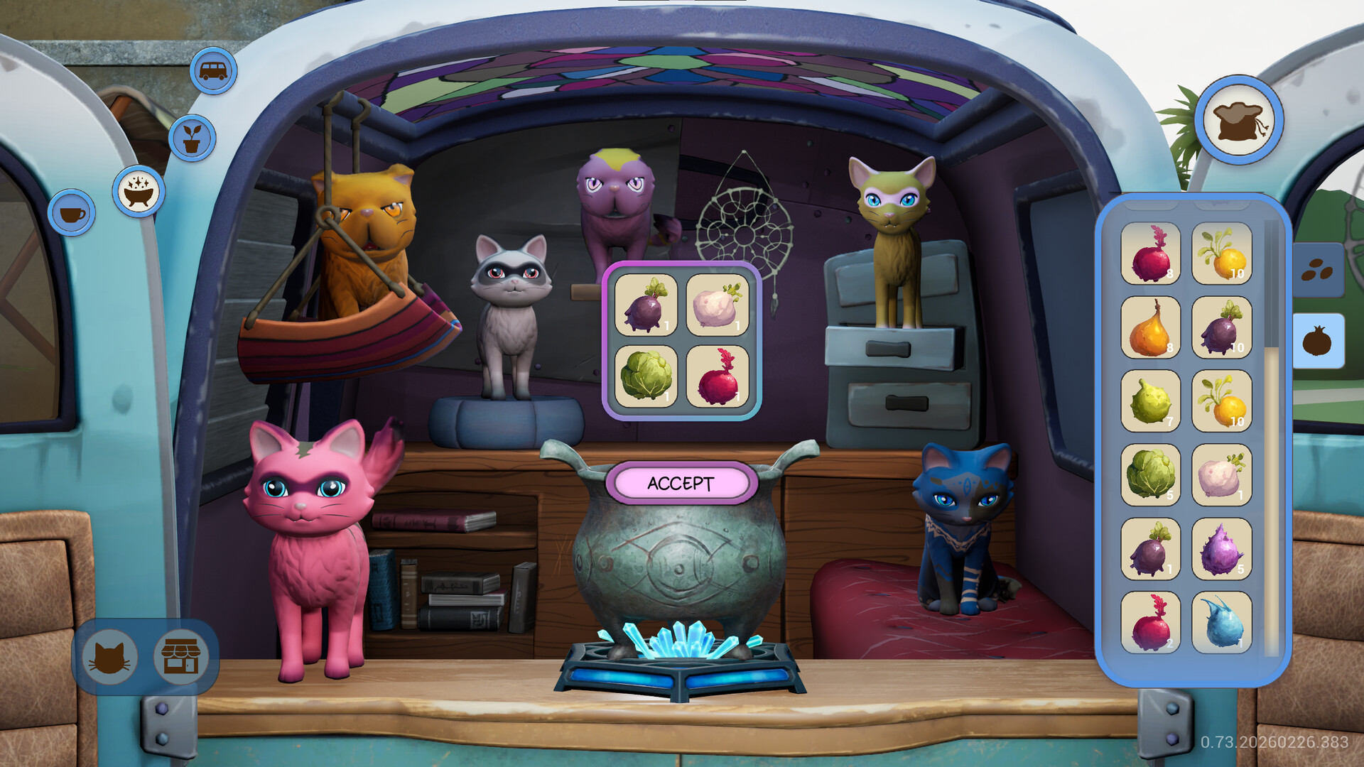 But with a magical cauldron bubbling in your van, everything changes. Bring warmth, color, and fuzzy friends back to the people. Welcome to Cat Craft.