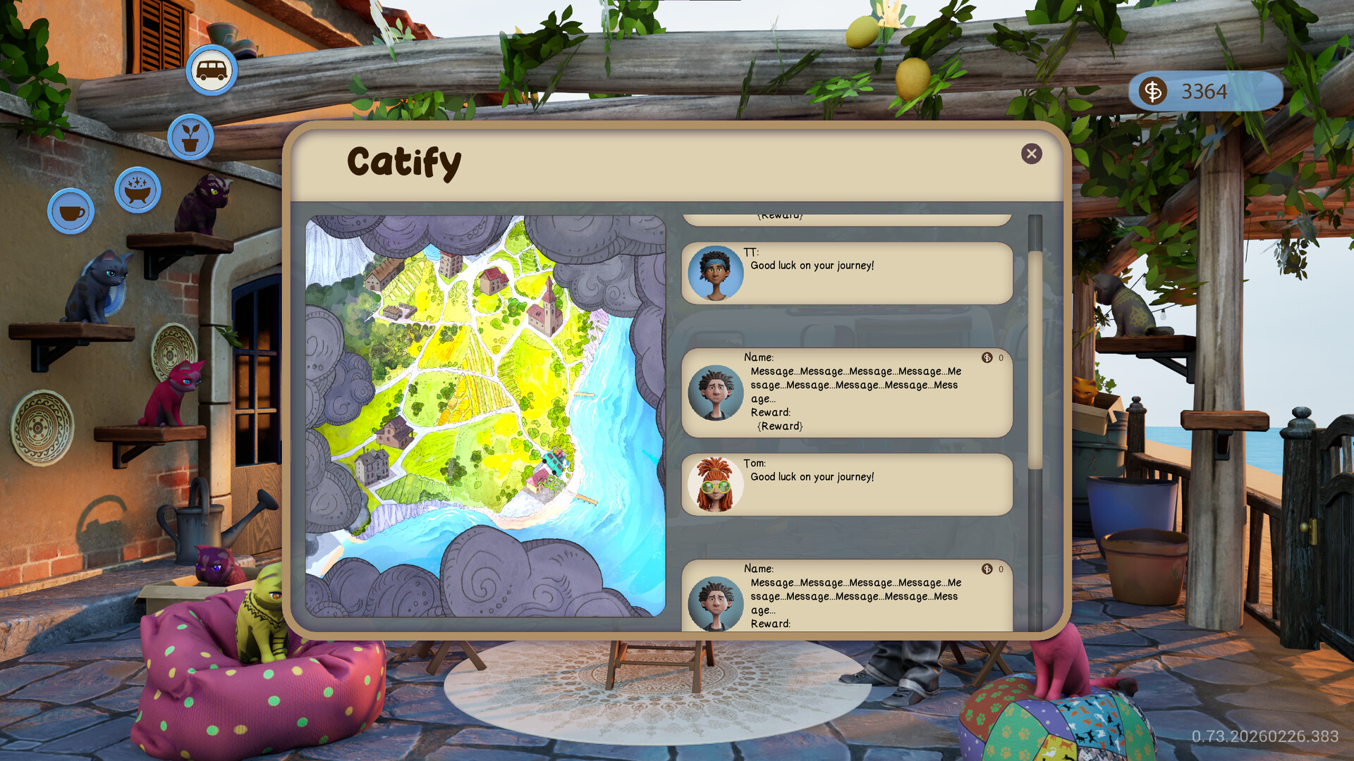 Hop in your van to deliver custom-crafted cats directly to your clients' homes. Grateful customers will reward you with permanent access to special seeds and new recipes from their area.