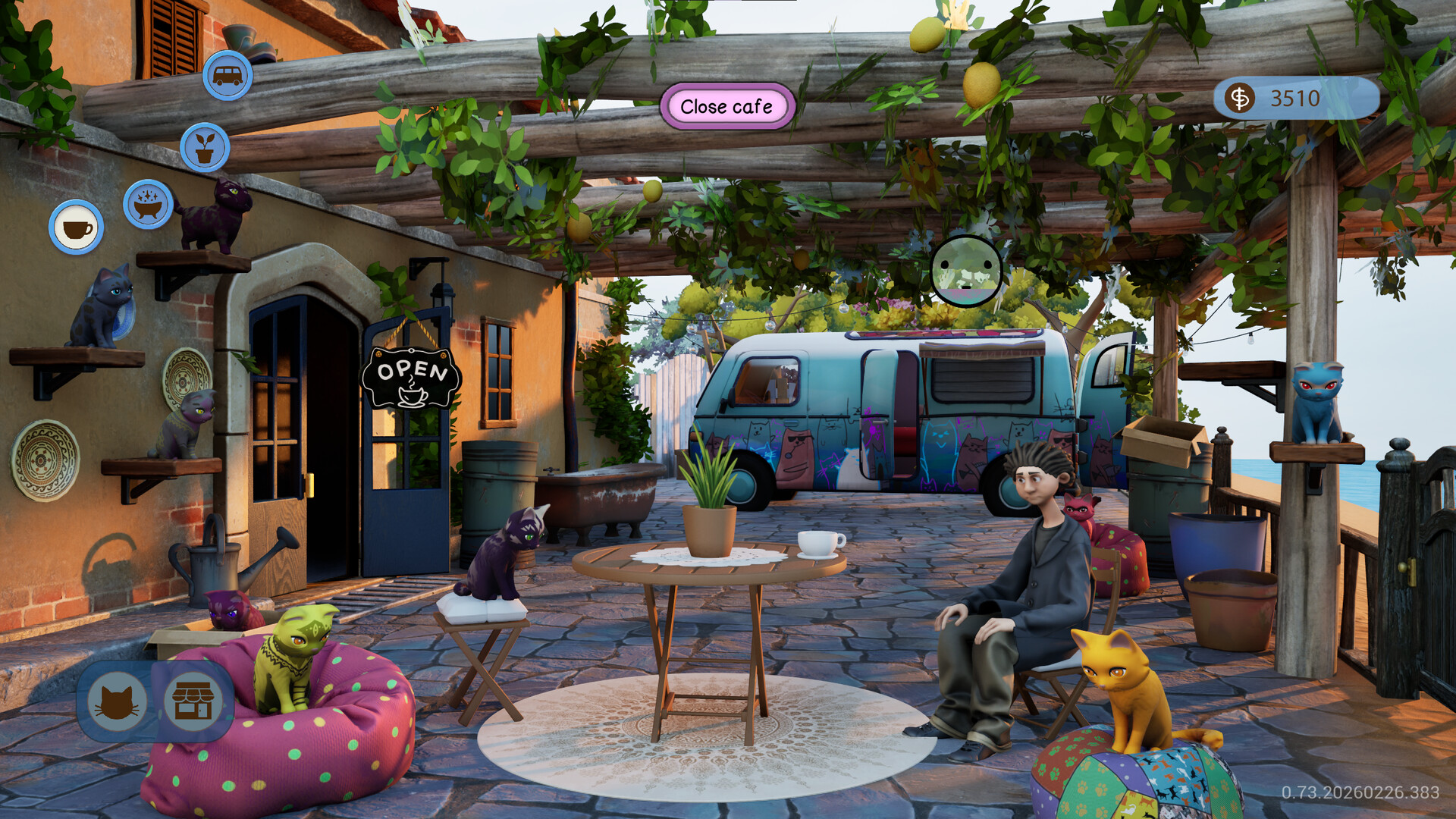 Hop in your van to deliver custom-crafted cats directly to your clients' homes. Grateful customers will reward you with permanent access to special seeds and new recipes from their area.