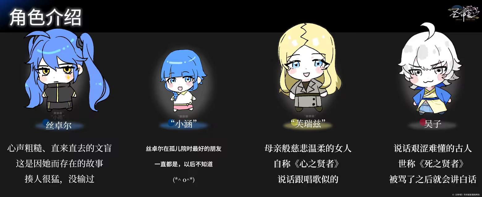 《Shengshenzhe》is a visual novel game that tells the story of the first half of the life of an orphaned young woman, "Xiaoyu" or "Si Zhuoer". The narrative follows her as she explores friendships, love, and familial bonds while encountering various Shengren. This work is a linear visual novel with no branches or choices.