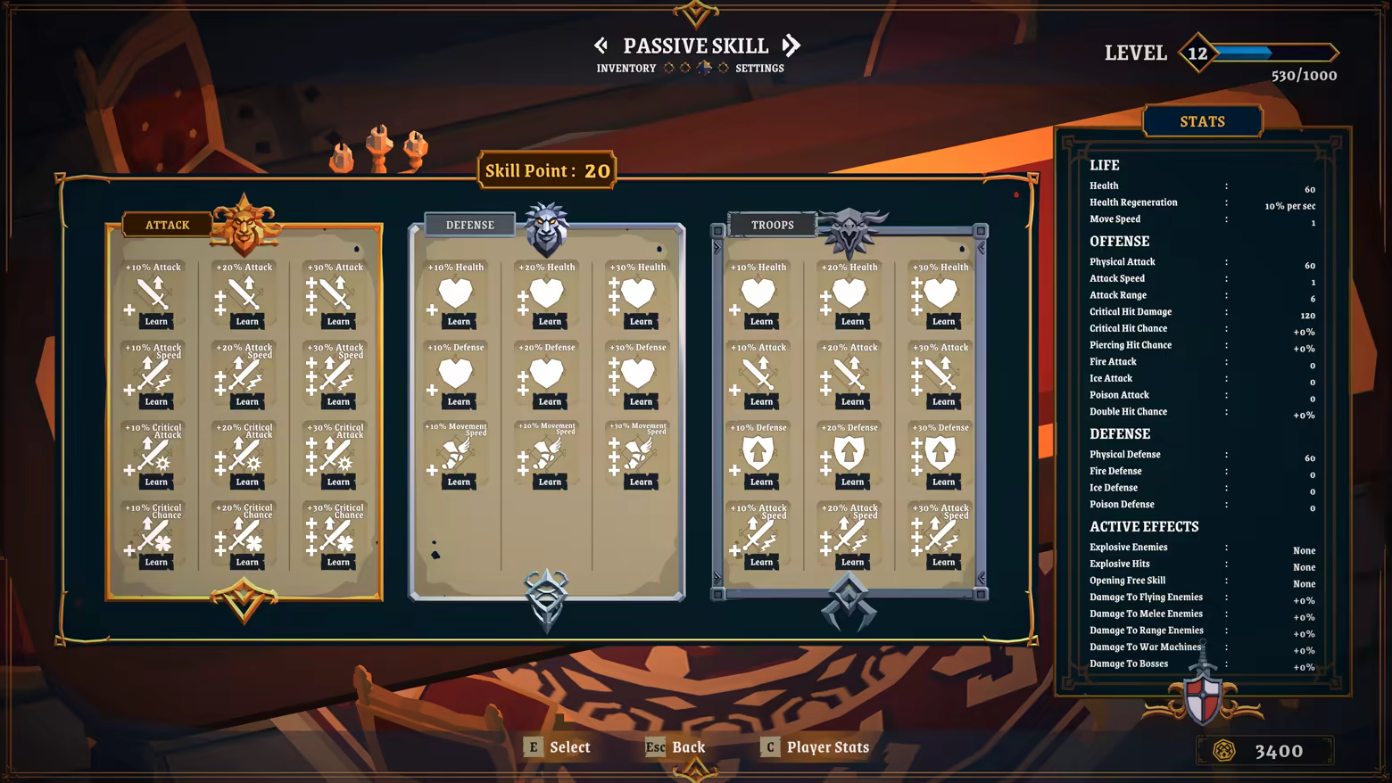 Before entering battle, you can improve your passive abilities with the experience points you have earned.