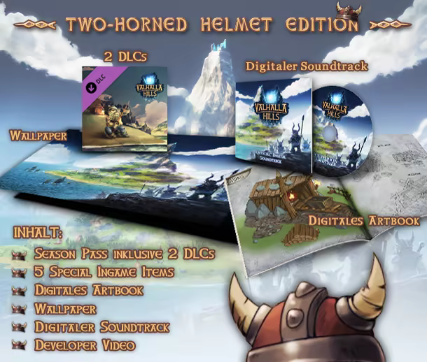 Pünktlich zum Release der Wikinger-Aufbausimulation von Daedalic Entertainment und Funatics erscheint die Two-Horned Helmet-Edition von Valhalla Hills mit einer Reihe spannender Premium-Inhalte: