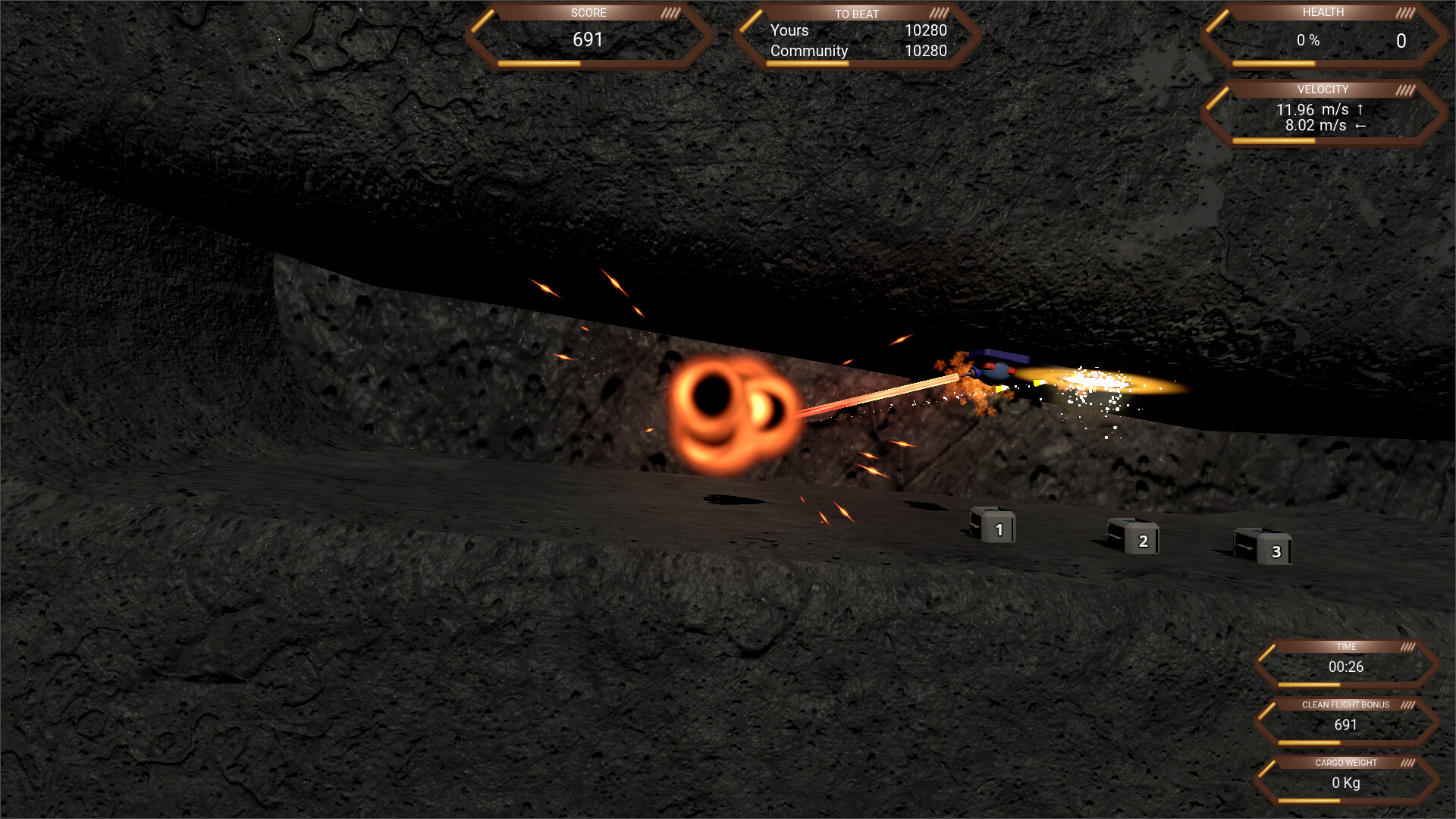 Fire thrusters to weave through twisting caverns, drop off vital cargo, and dodge hazards like searing beams, ruthless turrets, and showers of debris. Along the way, unlock 10 unique achievements that reward mastery, daring maneuvers, and flawless execution.