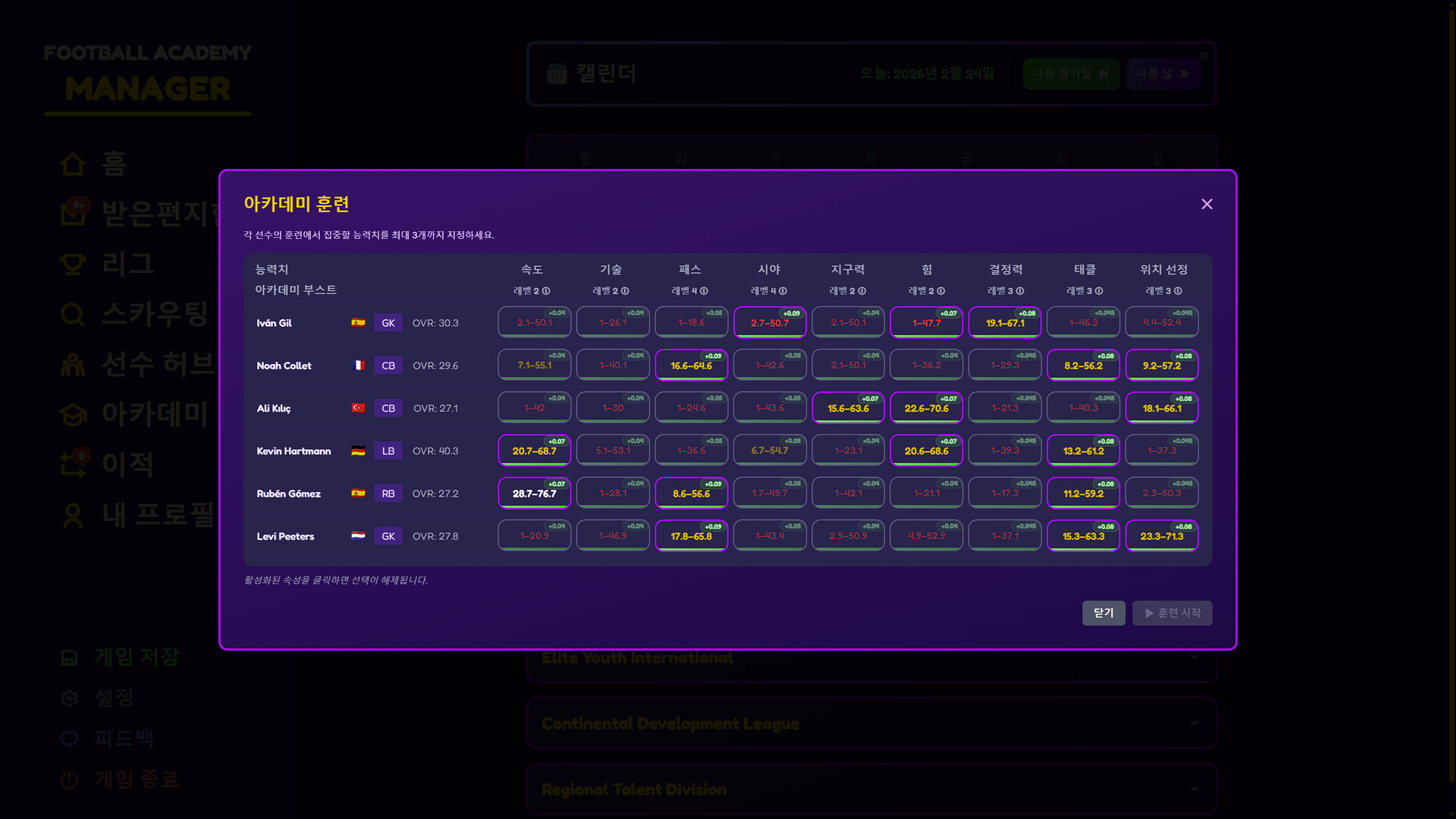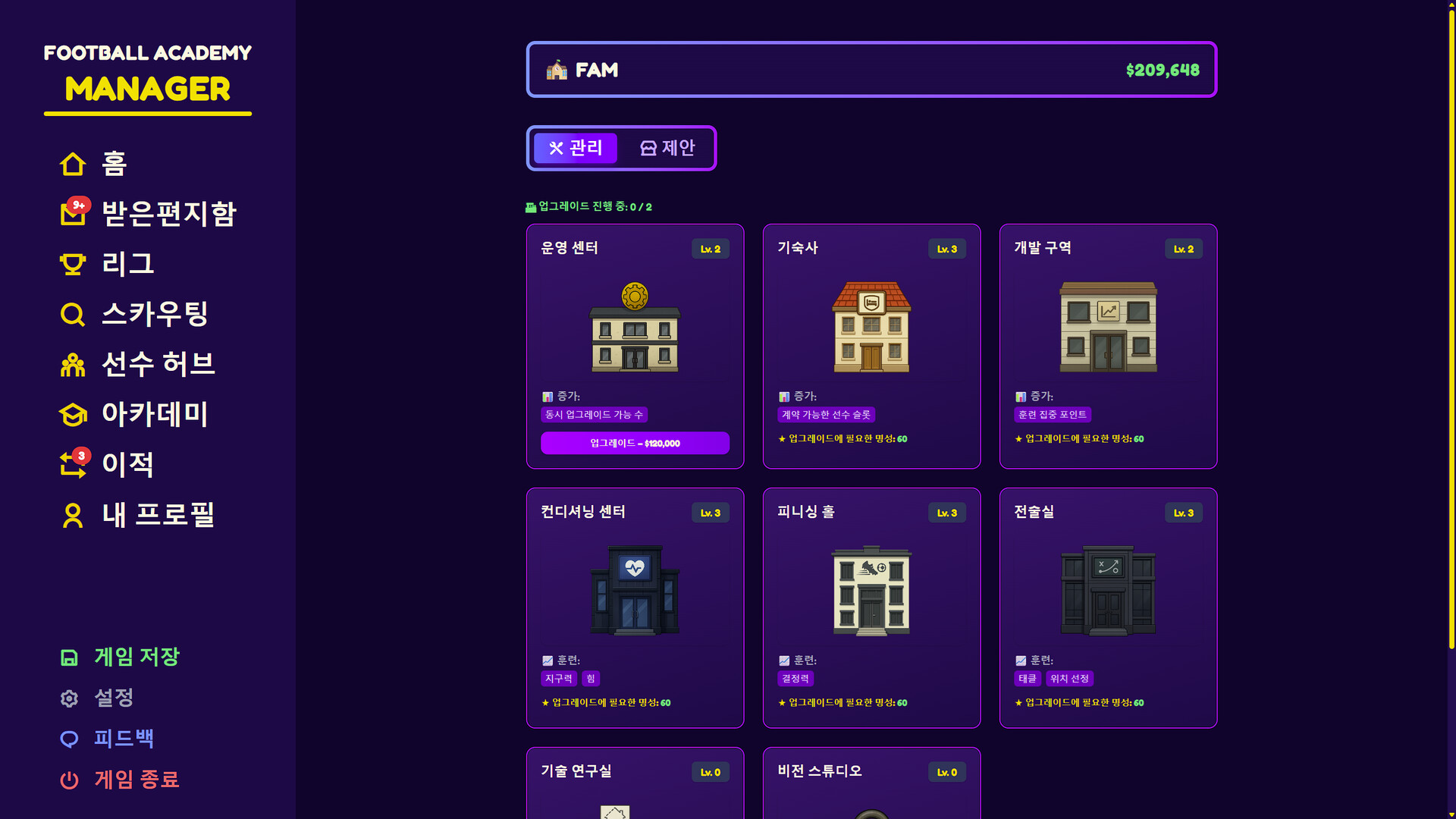 • 아카데미 업그레이드 — 시설을 개선해 성장 속도를 높이고 명성을 올립니다.