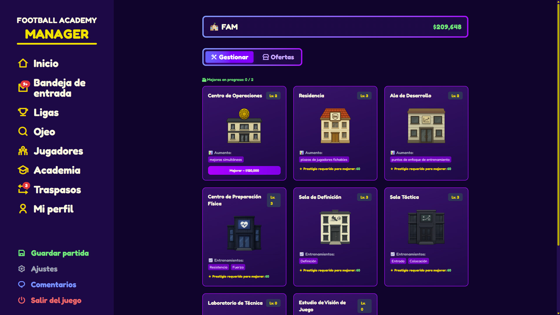 • Mejora tu academia — mejora instalaciones para acelerar el desarrollo y aumentar tu prestigio.