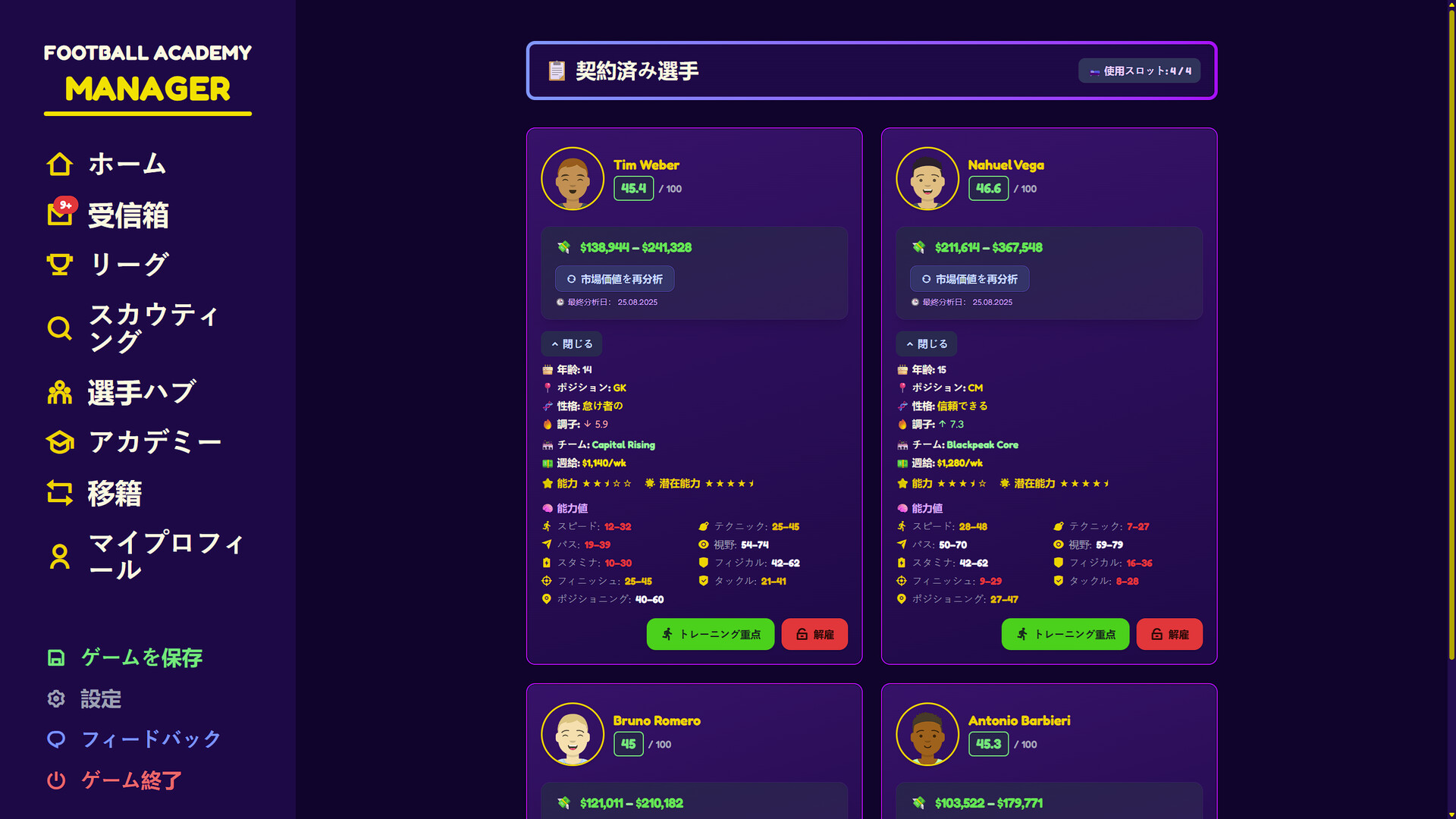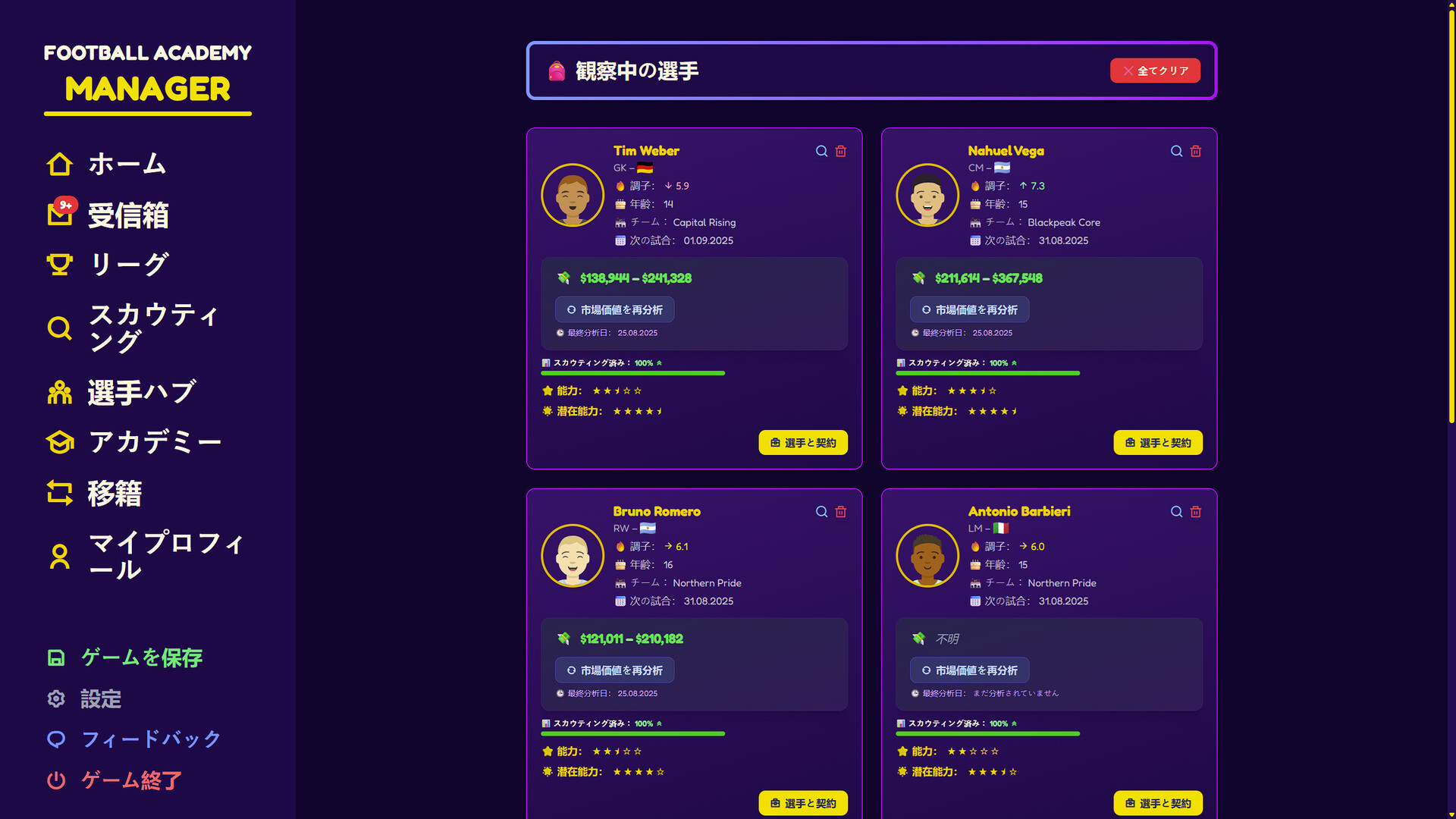 Football Academy Manager Demoをプレイ