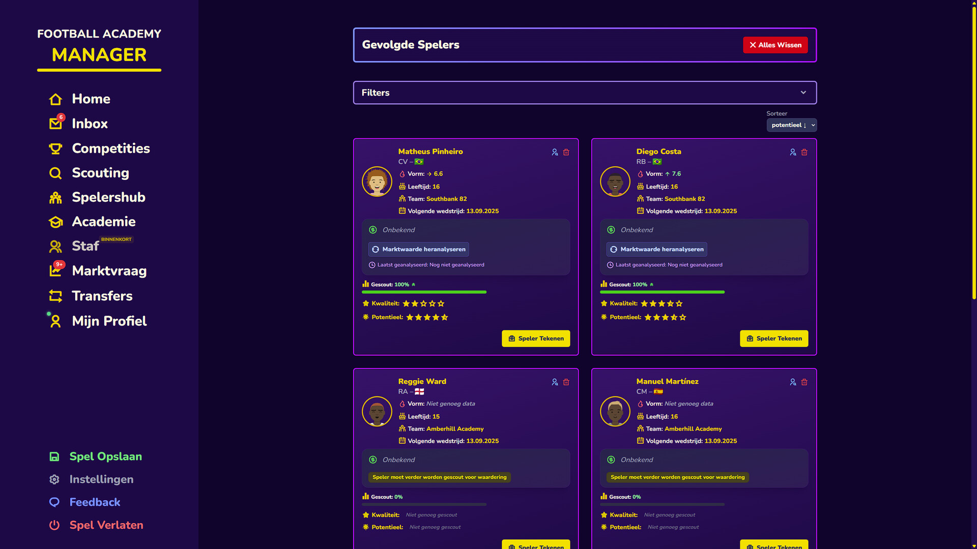 Run je eigen onafhankelijke voetbalacademie, scout en teken jonge talenten, en begeleid hun ontwikkeling tot waardevolle spelers. Train met een duidelijke focus, verkoop op het juiste moment, en investeer elke transfer opnieuw om je academie en je prestige te laten groeien.