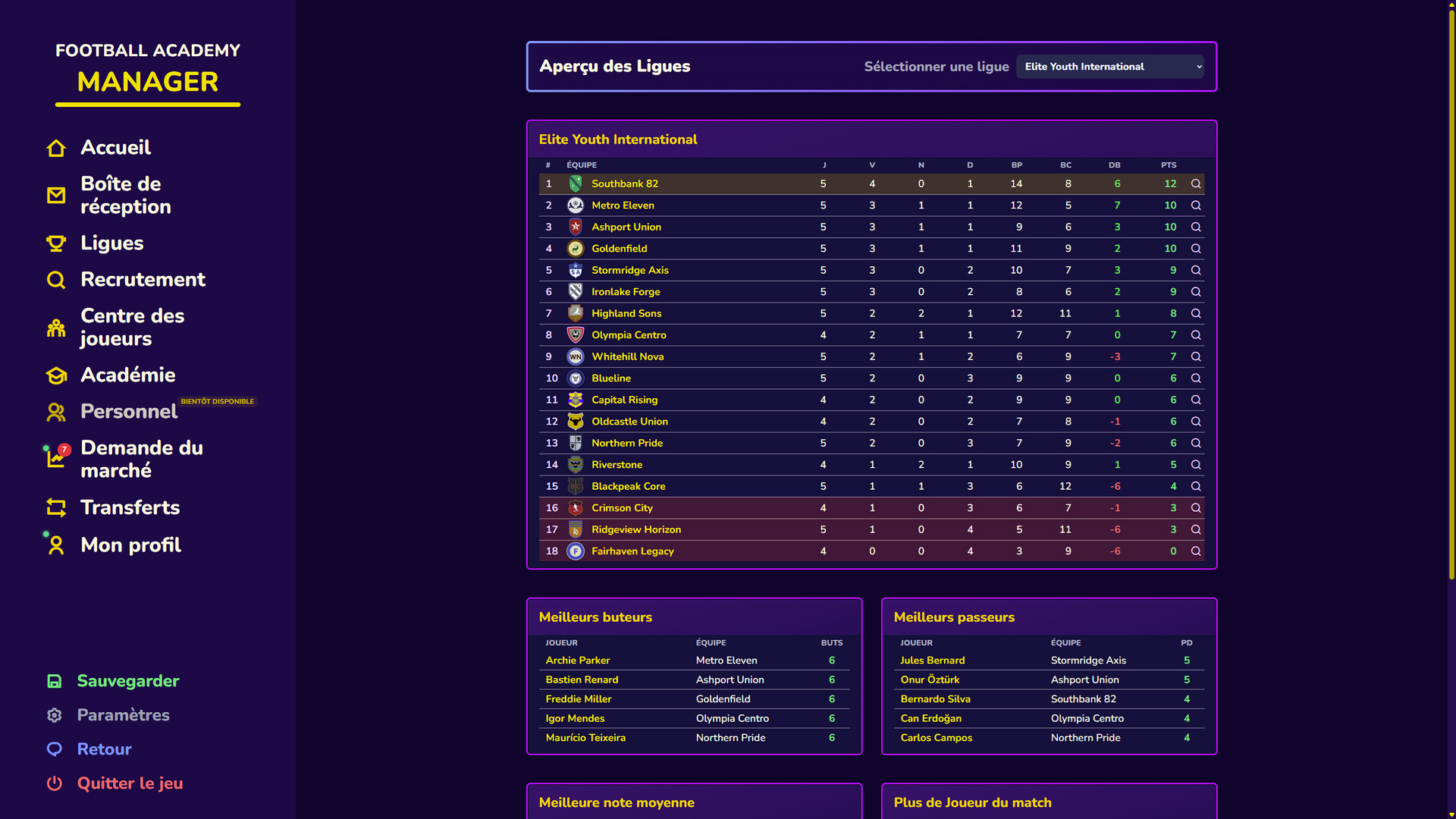 Dirige ta propre académie de football indépendante, repère et signe de jeunes talents, et fais-les progresser jusqu’à en faire des joueurs de valeur. Entraîne avec un focus clair, vends au bon moment, et réinvestis chaque transfert pour faire grandir ton académie et ton prestige.