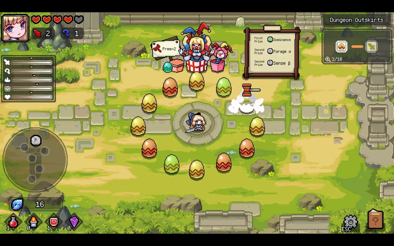 Chasing the Dawn is a probability-based strategy game with adorable pixel art style! On this 4×4 grid, use your wit and luck to venture deeper into the dungeon.