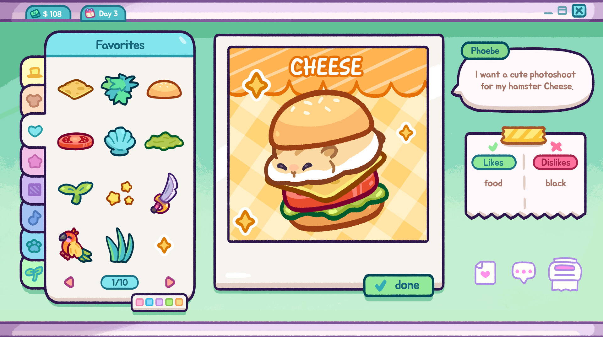 Run the cutest little photo & print shop in town, where every day brings a new and charming challenge. Customers arrive with unique requests — from magical pet portraits to restoring treasured family photos, and it’s your job to bring their visions to life.