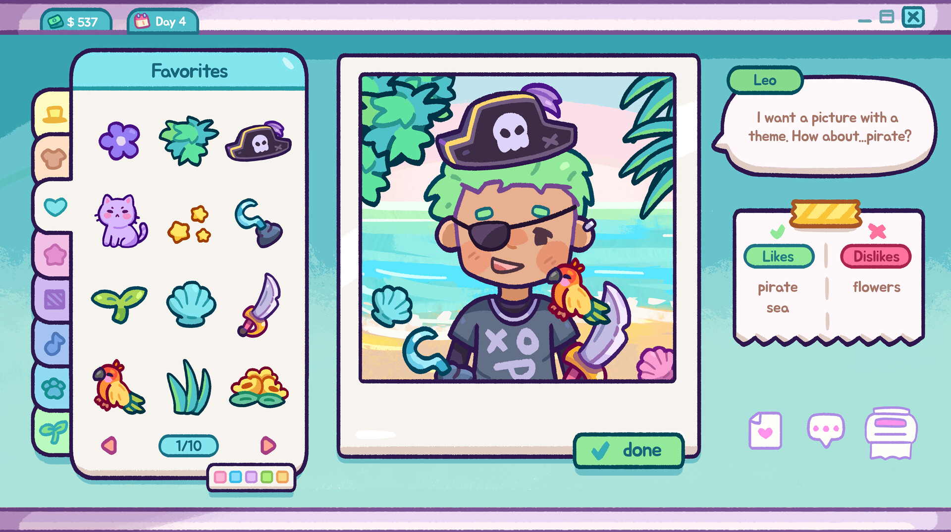 Run the cutest little photo & print shop in town! 📸 Snap & Print is a cozy job simulator, where you take portraits, edit and restore pictures, and decorate shots with hats, flowers, stickers, and more. Upgrade your studio, unlock new props, and make every customer smile.