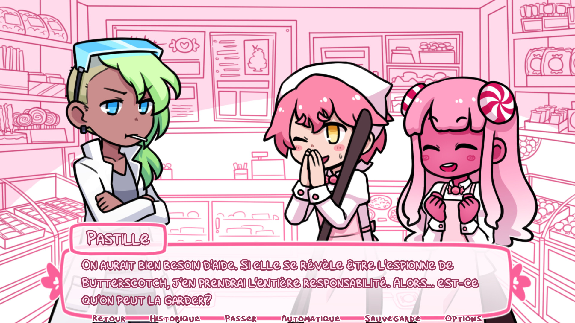 SYRUP ET LA SUCRERIE ULTIME est un visual novel initialement créé pour la Yuri Jam 2015 ! L'histoire suit une alchimiste bonbon, Syrup, qui découvre un golem en bonbons dans le sous-sol de sa boutique.