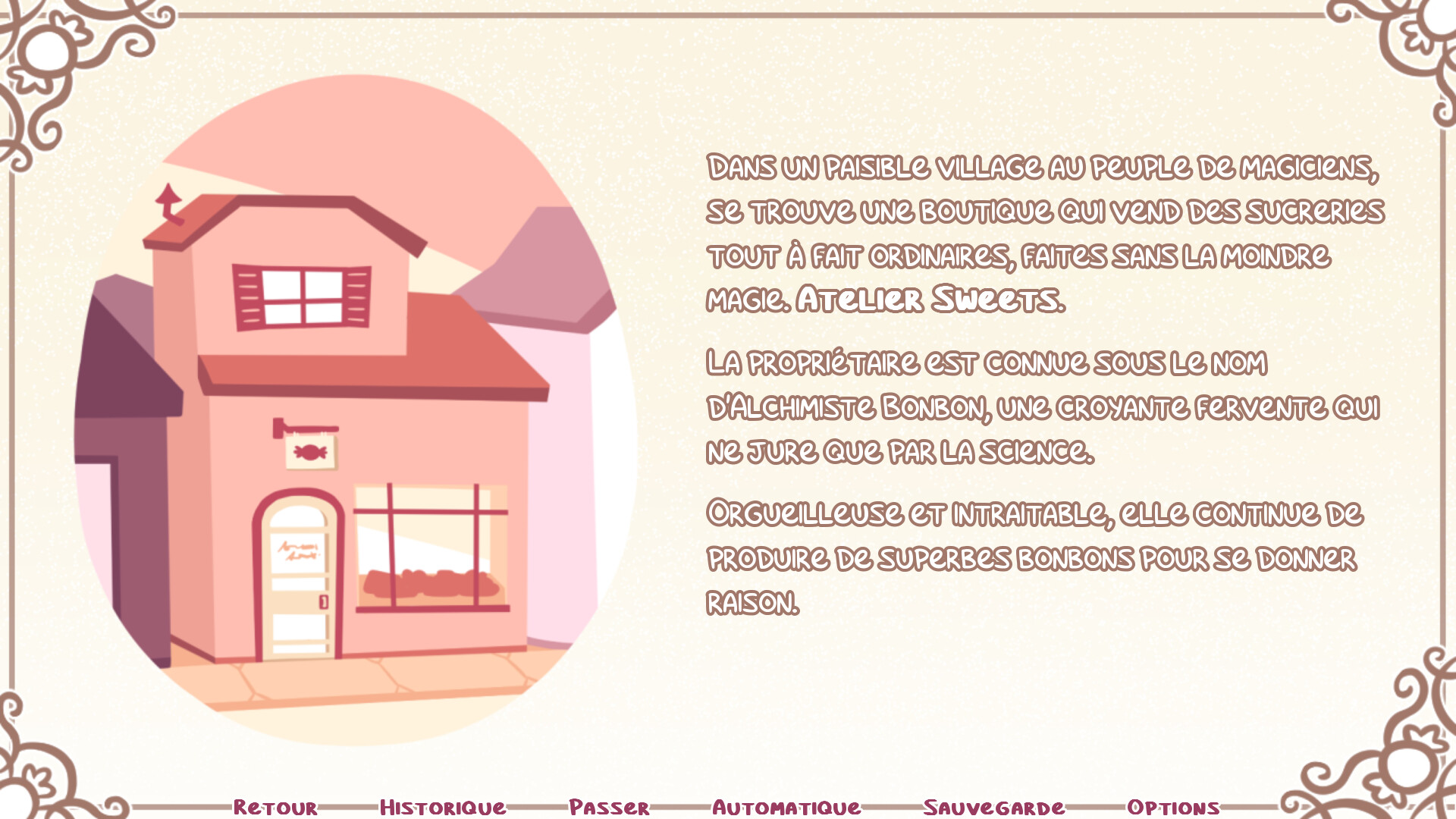SYRUP ET LA SUCRERIE ULTIME est un visual novel initialement créé pour la Yuri Jam 2015 ! L'histoire suit une alchimiste bonbon, Syrup, qui découvre un golem en bonbons dans le sous-sol de sa boutique.