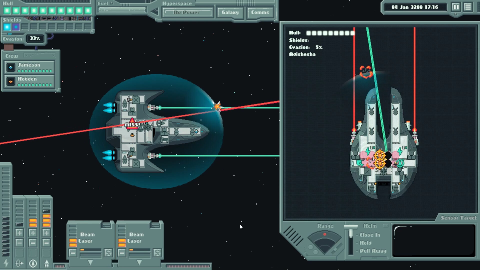 • Realtime tactical combat - Raise shields, distribute power, target enemy systems, power up the jump drives to escape or talk your way out of trouble