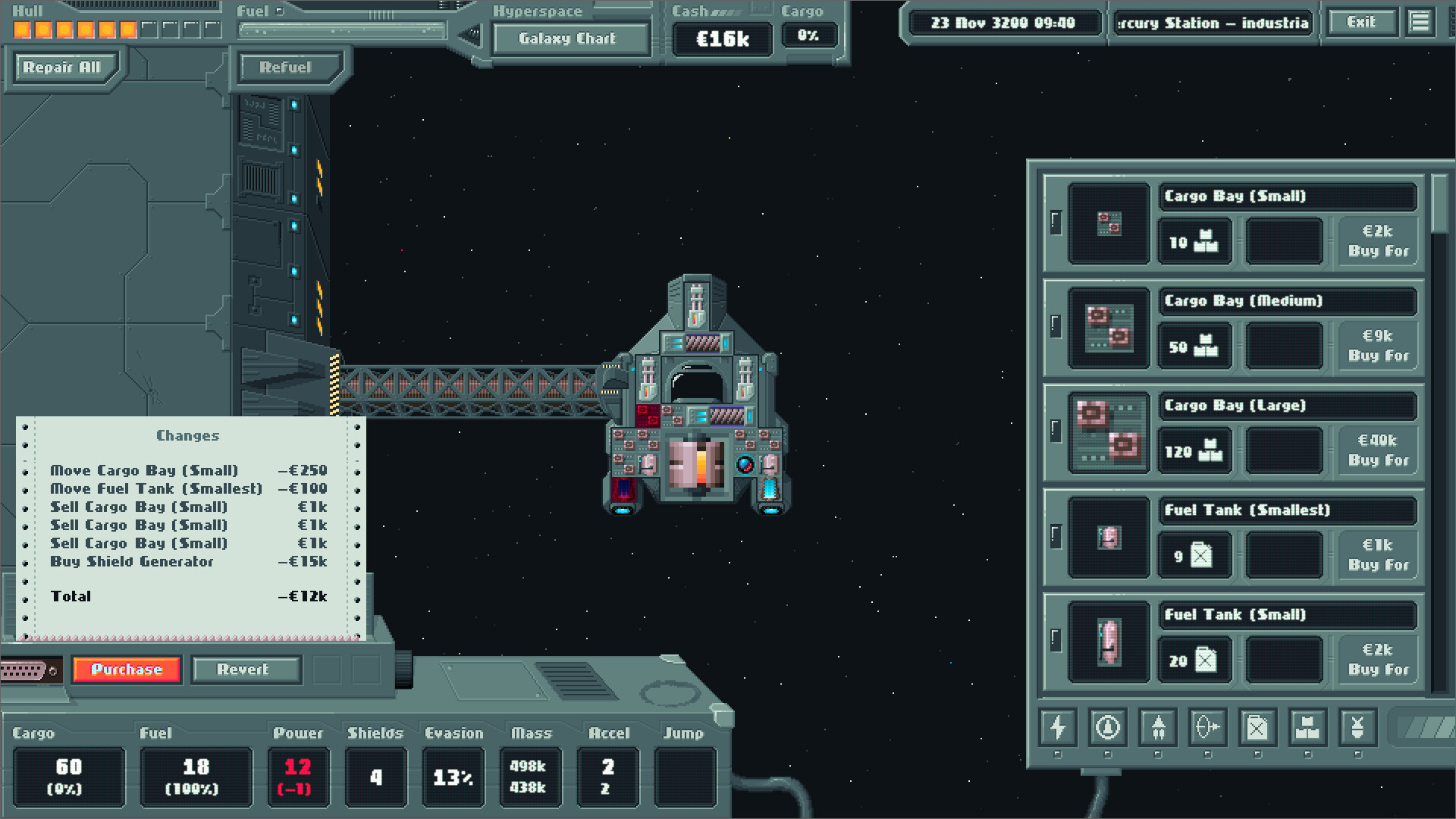 • Ship Design - Build your starship your way and change its configuration to balance, attack, defence, speed, cargo capacity and jump range or buy new larger starships