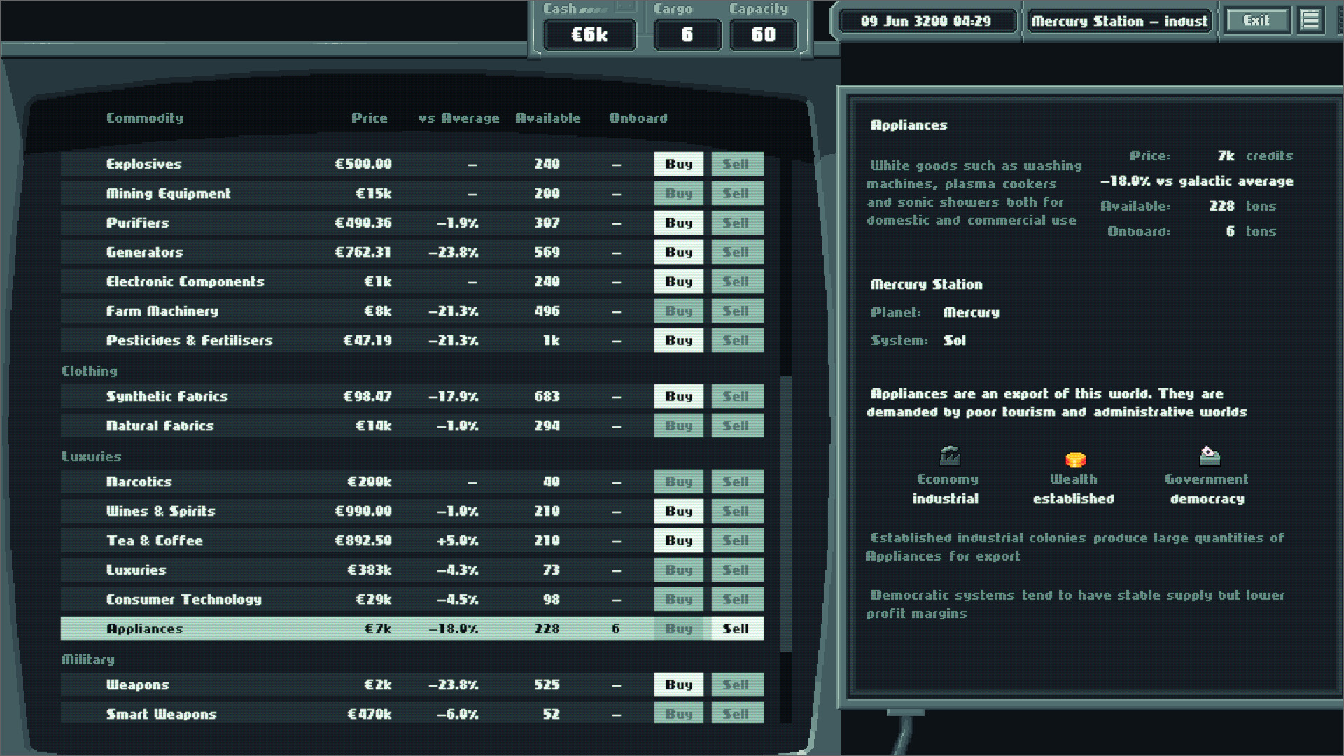 • Dynamic Economy - Trade your way to profit with a dynamic economy which rewards clever planning and risks, not milk-runs