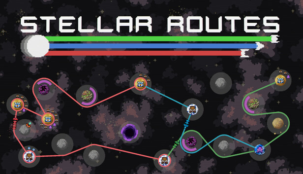 Stellar Routes is a transportation management game set in space! Draw routes between planets and watch as ships transport aliens across the system. Buy, upgrade, and slingshot ships to ridiculous speeds to get these aliens home before they are cast adrift.