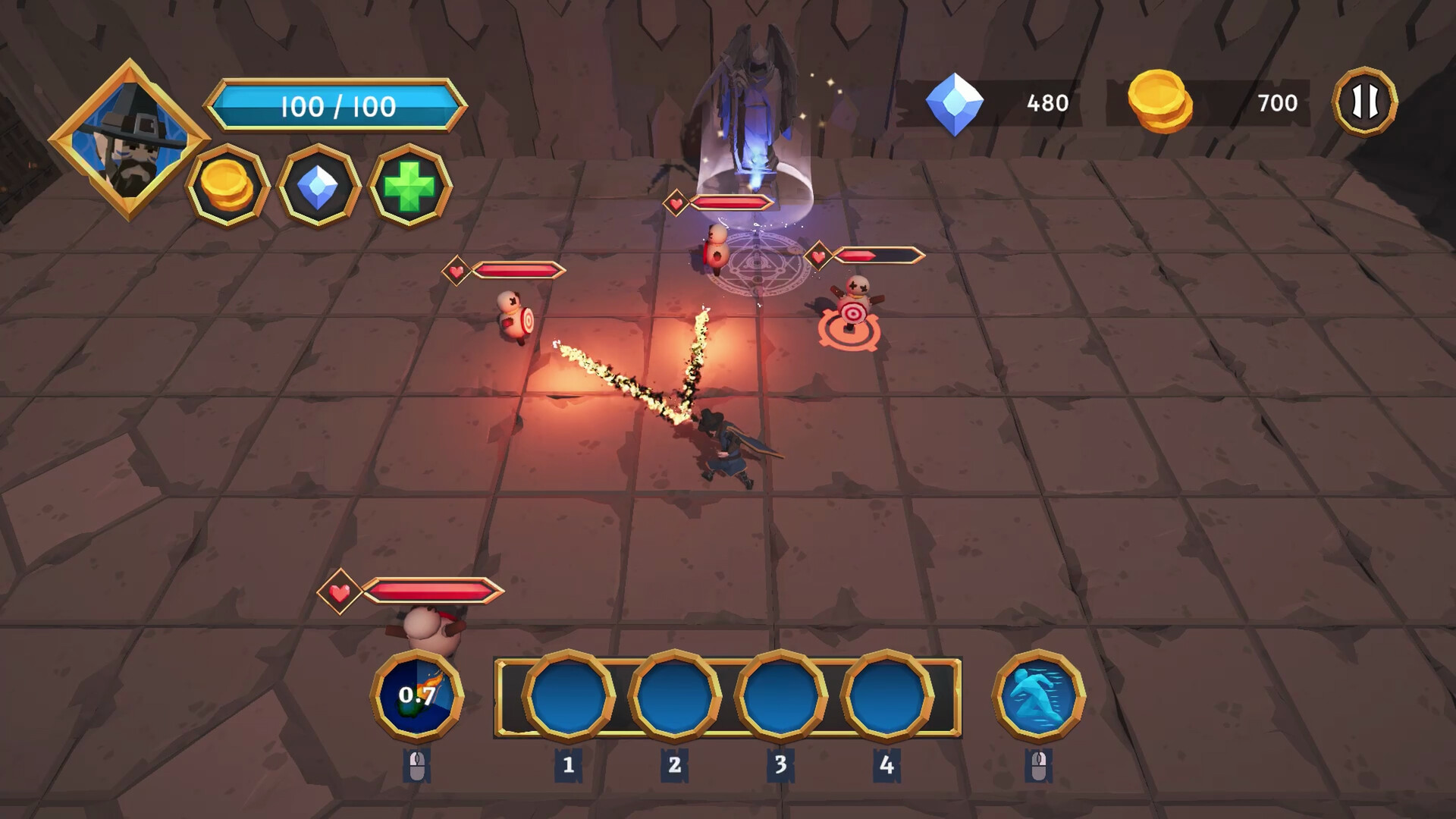 • Hit & Run Combat – Fire rapid‑cast spells, dodge incoming attacks, and reposition yourself to control the fight flow. Players can leverage dash, fireball, or other skills to defeat waves of enemies in the room level.