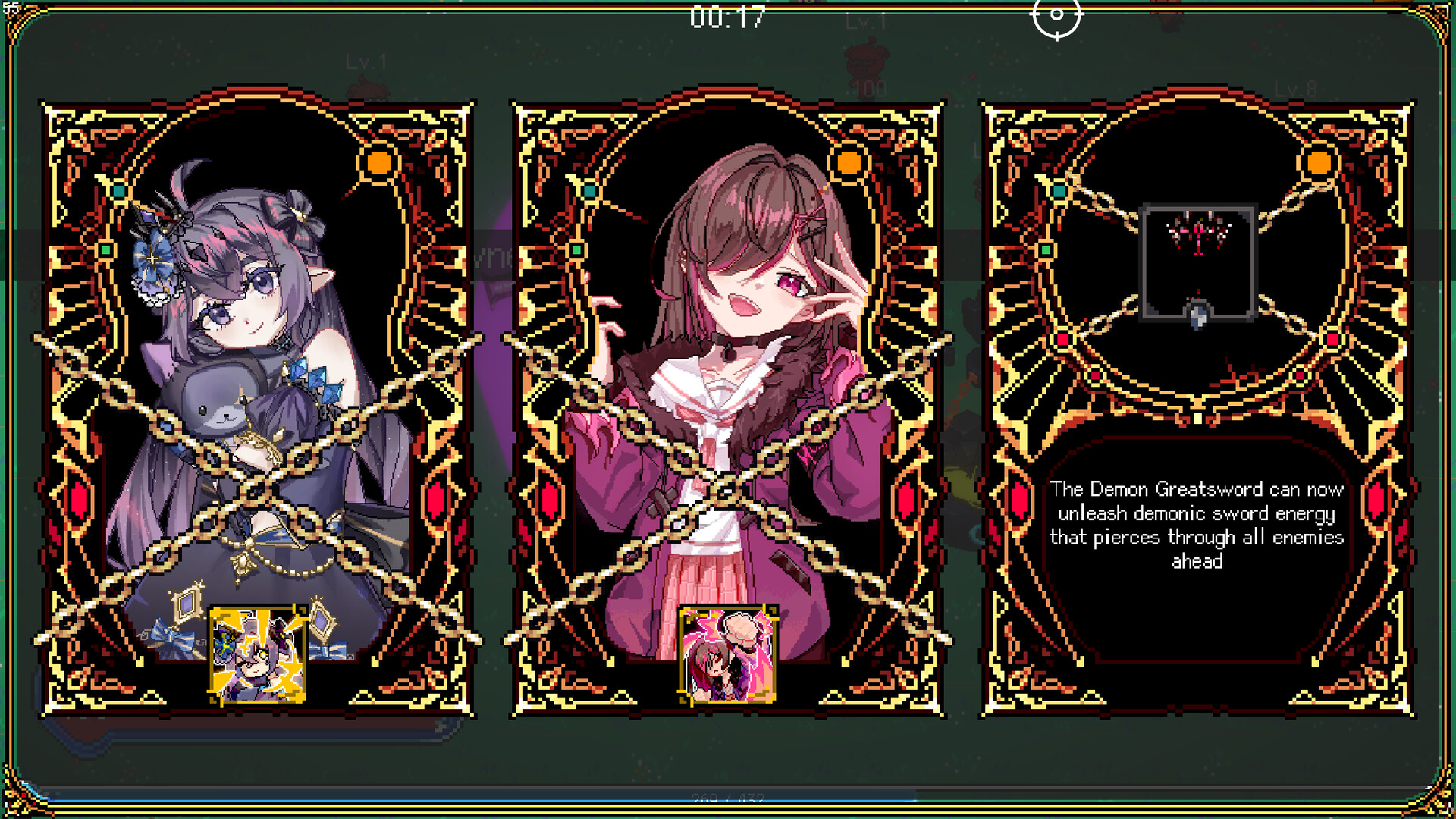 "Isekai HKV" is a 2D top-down pixel-style Roguelike game themed around Vtubers crossing into another world, inspired by "Elden Ring Nightreign," "Vampire Survivors," and "Holocure."
