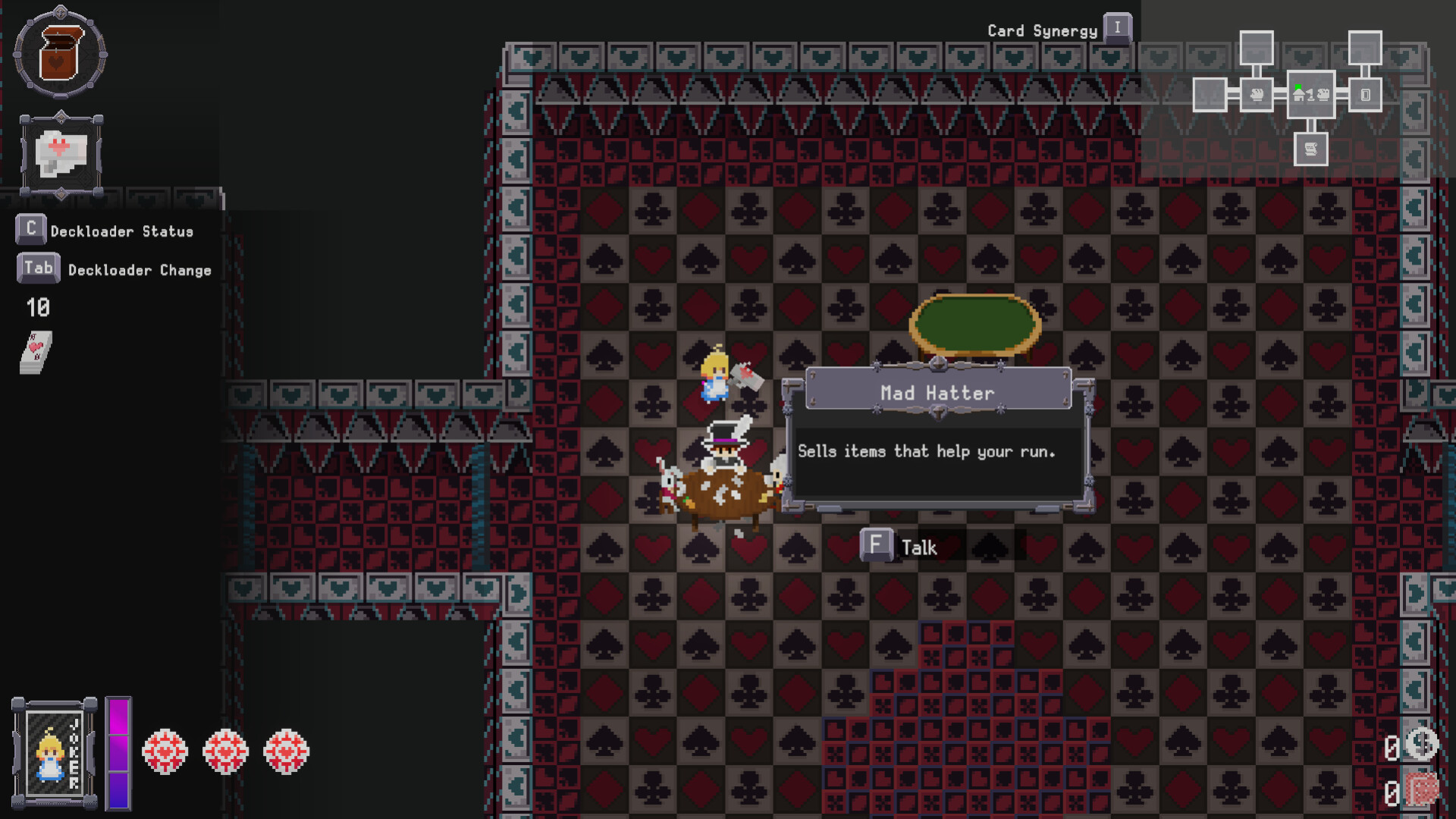 Fuera del combate, Wonderdeck utiliza una estructura de mapa-mesa donde las recompensas y los riesgos se leen como cartas. Elige tu camino, administra tus recursos y prepara la siguiente batalla según la build que intentas completar.