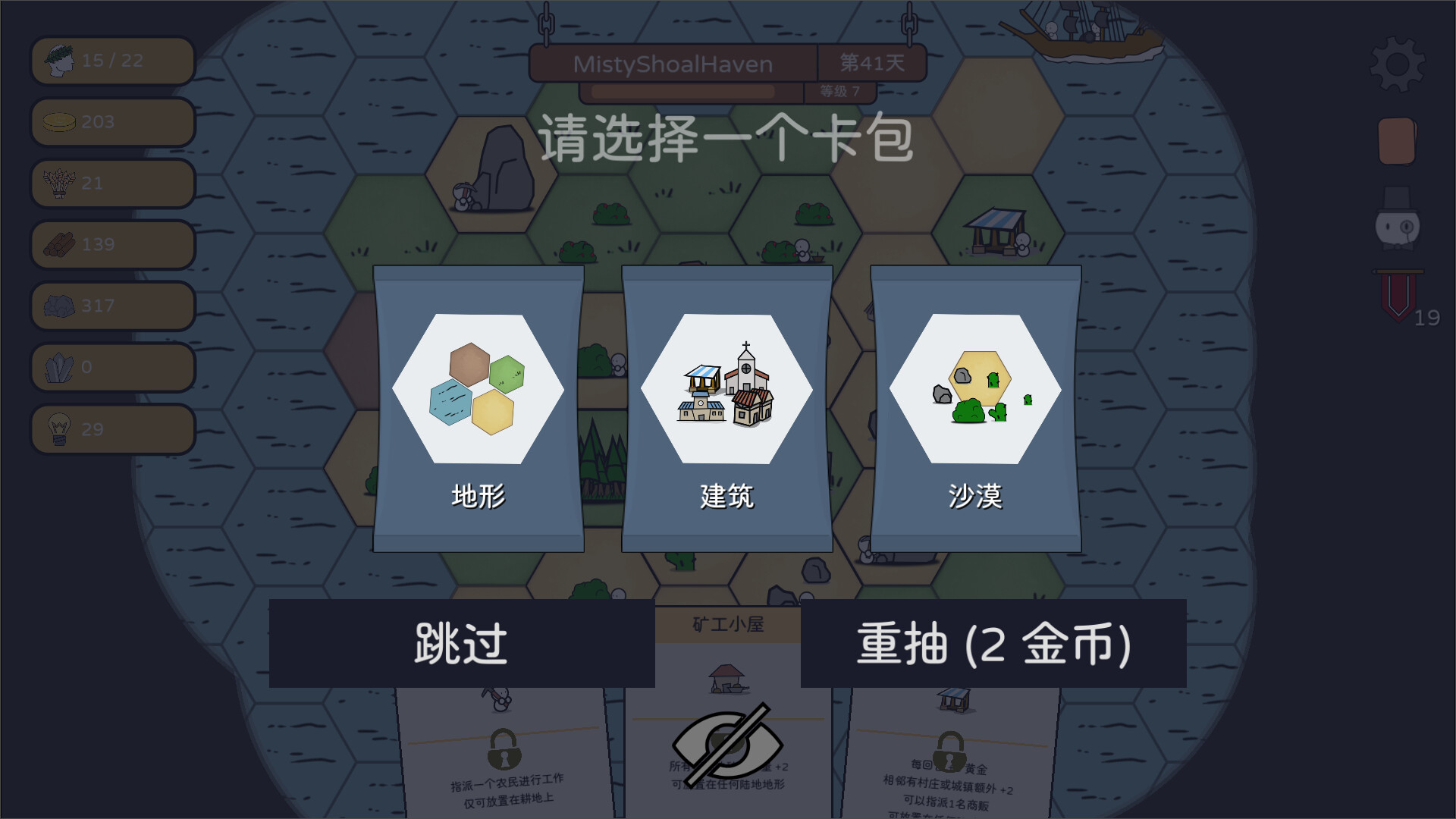 抽取卡包,建设小岛