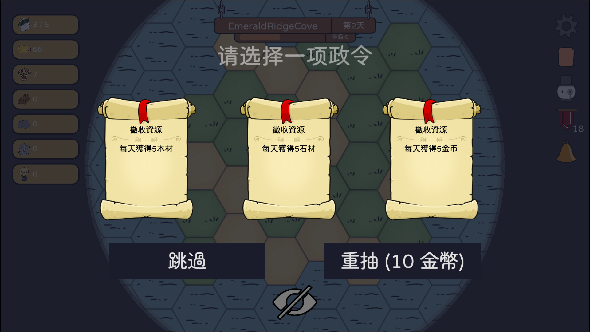 通過手中的卡牌建設你的島嶼,收集資源並完成國王交待的各項任務。