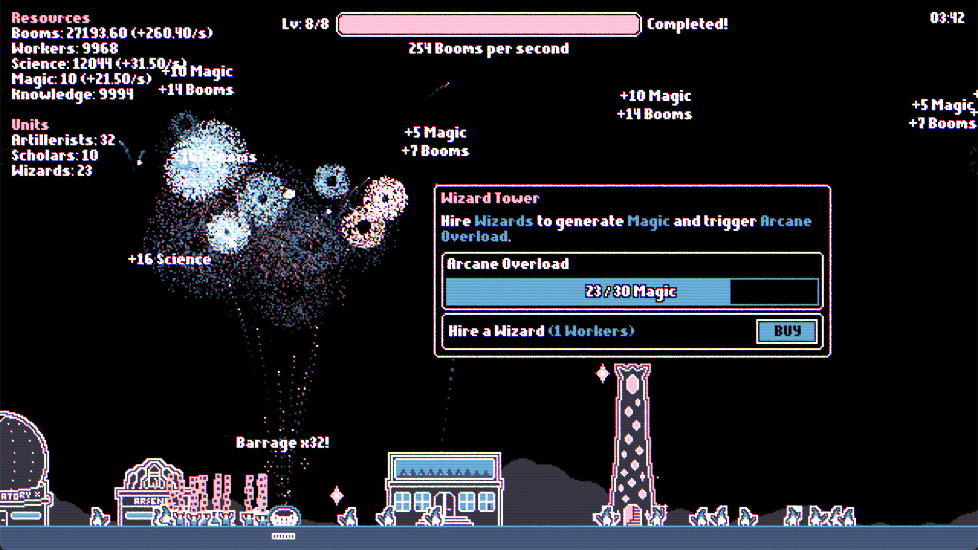 • Hire Artillerists, Scholars and Wizards to boost your fireworks production