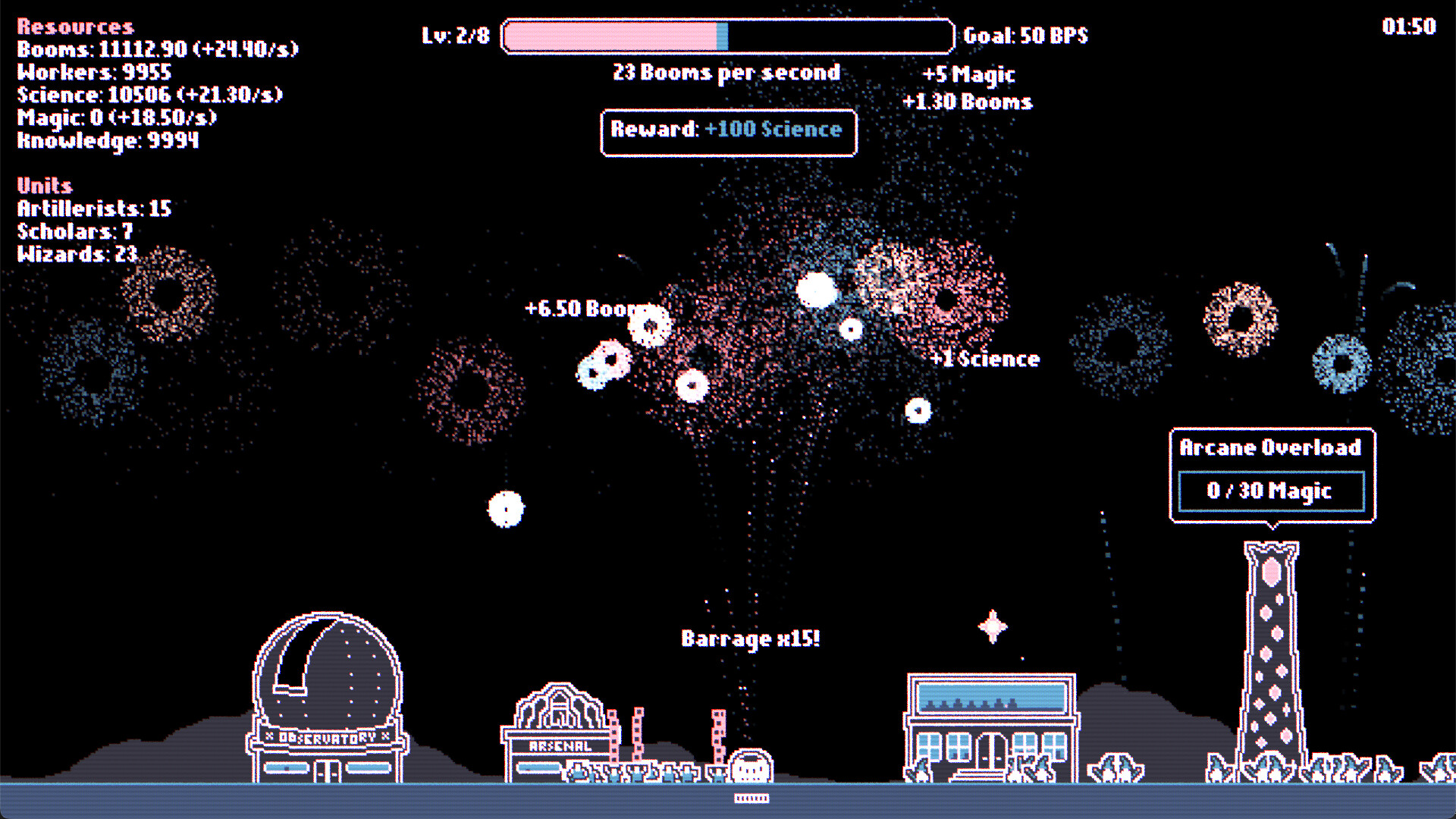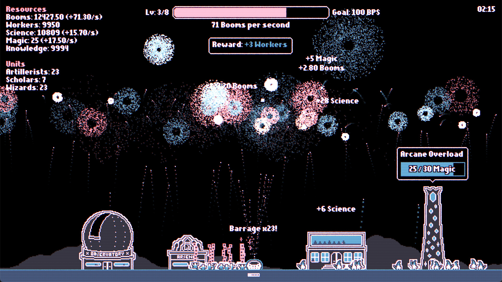 • Hire Artillerists, Scholars and Wizards to boost your fireworks production
