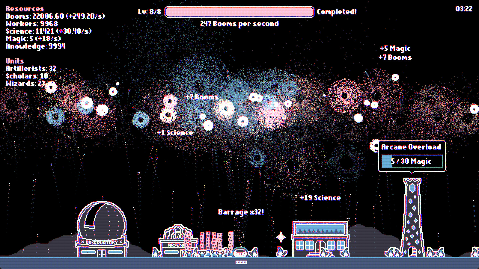 • Unlock buildings like the Arsenal, Observatory or Wizard Tower, each with unique mechanics and upgrades