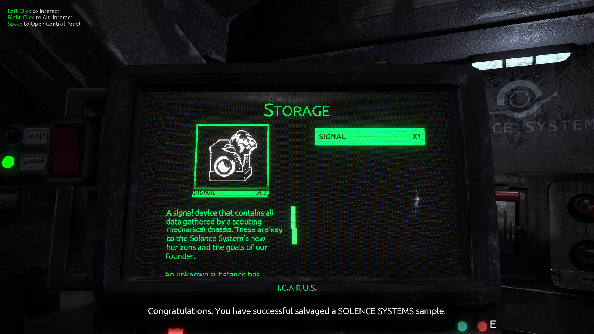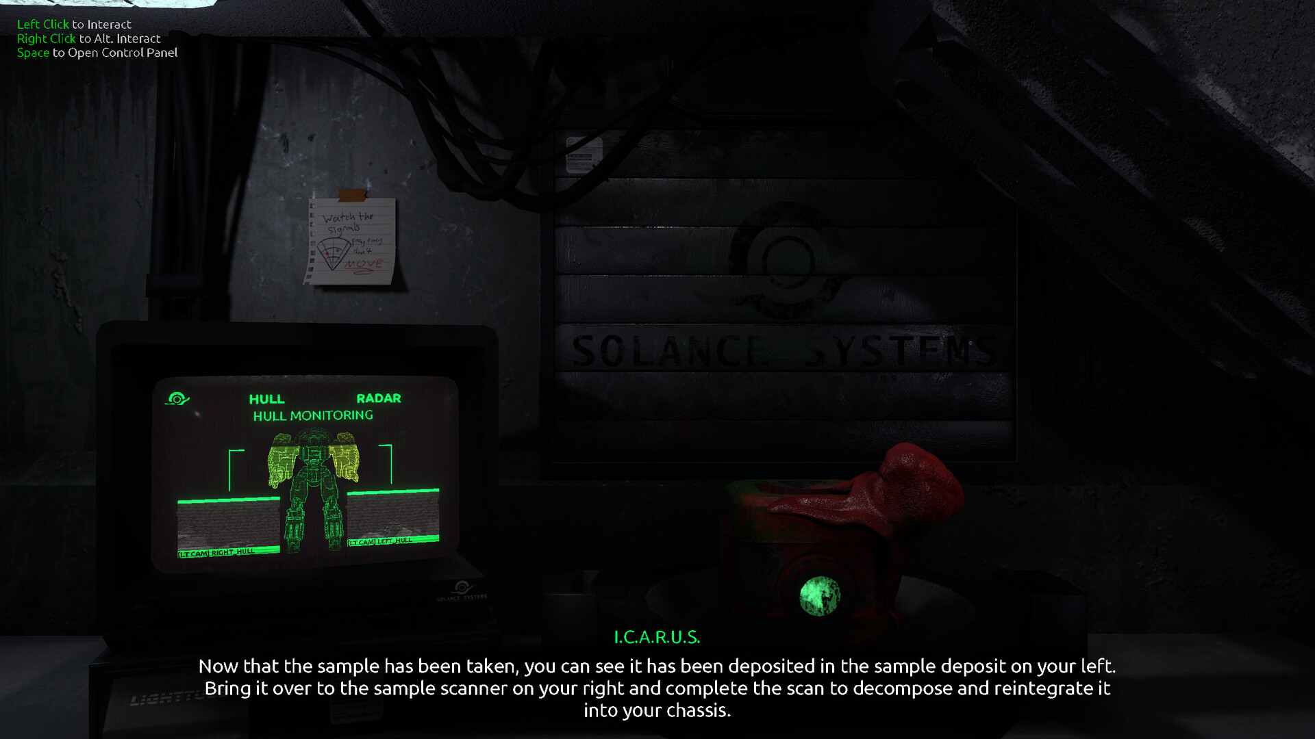 The main portion of the gameplay is set within a mech provided by your employer, Solance Systems. They have tasked you with retrieving "Signals" from various remains of previous mech pilots in the area, any further information about your task is strictly confidential. Something goes wrong while you're down there, you are trapped in an old residential colony below your target location. While not intended, Solance tasks you with collecting the "Signals" on this lower, more hostile floor. They aren't carving an escape path for you until you do.