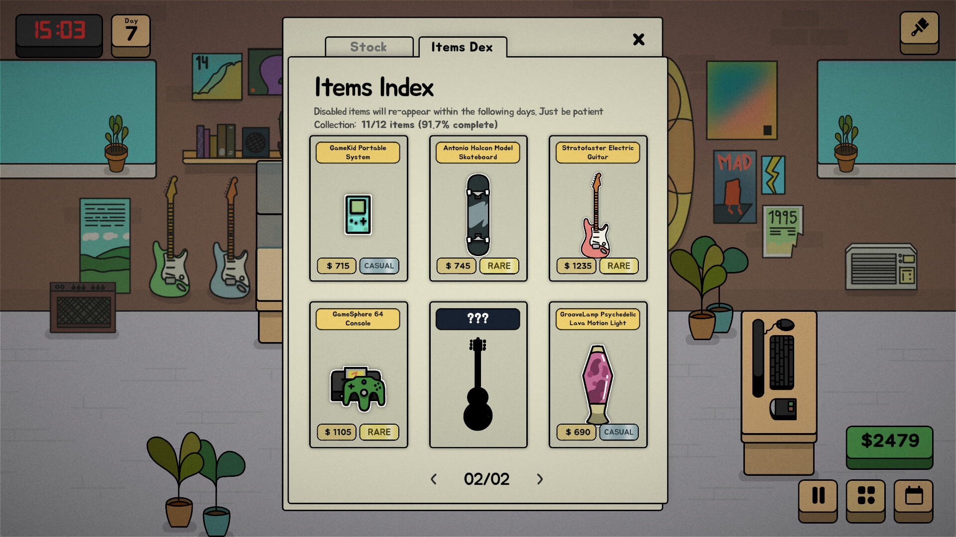 Build your Items Index, every successful haggle adds unique treasures to your collection. But rent hits daily: balance cash for bills against inventory investment. Overextend and face insolvency; play safe and miss opportunities.