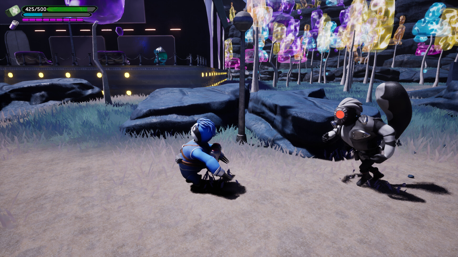 Developed in Unreal Engine 5 with a colorful and expressive aesthetic. Each world has its own visual identity, from lush natural settings to urban and technological environments.