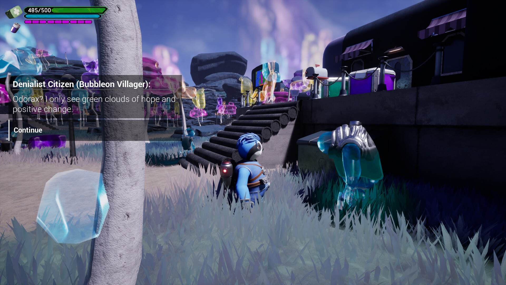Noah may be lazy, but his wit makes him the most unlikely hero in the galaxy. Dynamic dialogues with his boss Vex keep the tone humorous as you face increasingly chaotic situations.