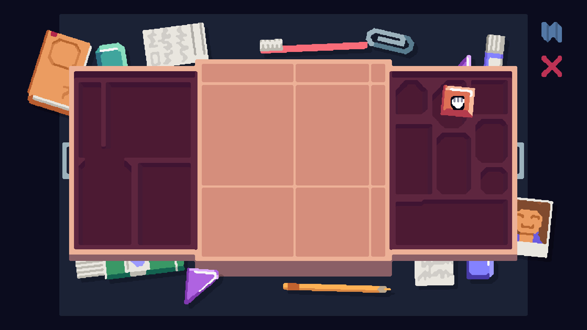 Snapshots is a cosy puzzle game about organizing messy spaces. Place every object back where it belongs, one screen at a time.