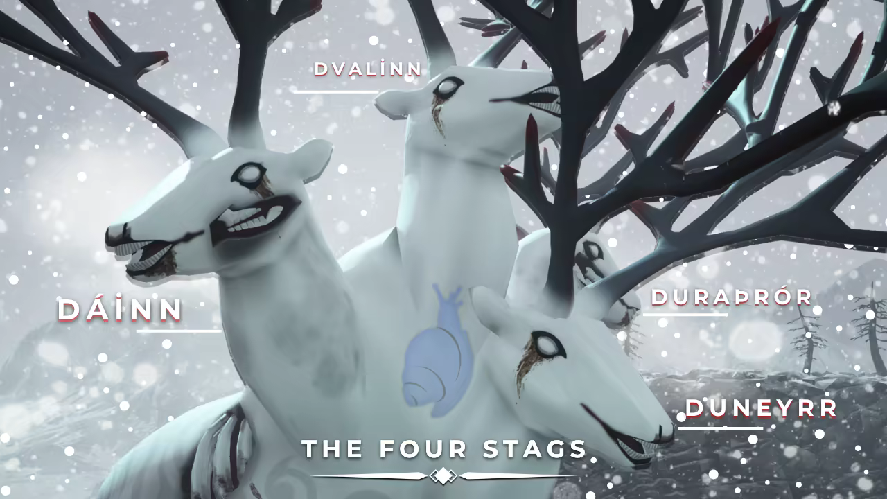 Yet shadows stir in the blizzard. Dáinn, Dvalinn, Duneyrr, and Duraþrór, the Four Stags of endless winter, stride across your Hell. Their antlers pierce the skies, their hooves shake the frozen earth, and their very breath halts the warmth of life. They will test not only your dominion, but your will to endure the silence of an eternal winter.