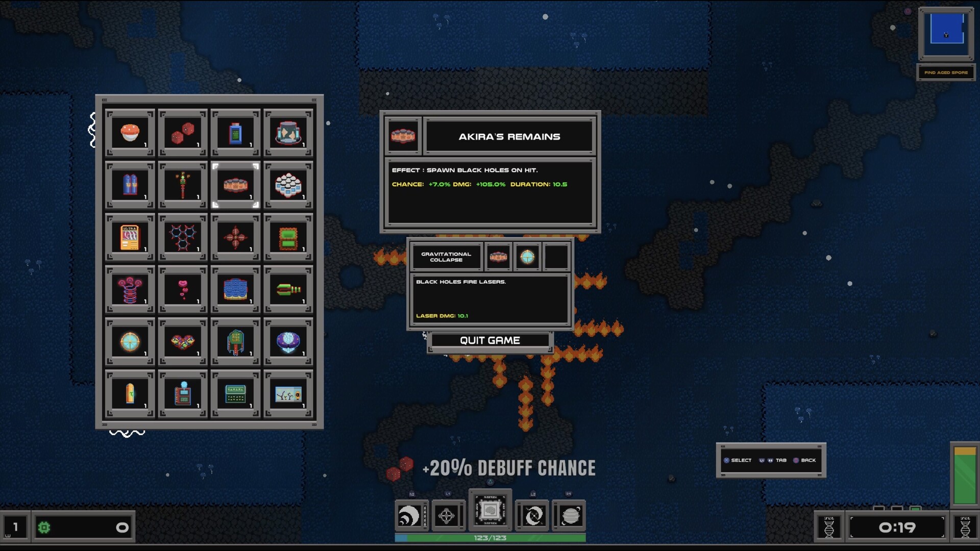 • Over a 100 of items and perks to select. Effects ranging from basic like chain lightning to orbital lasers.