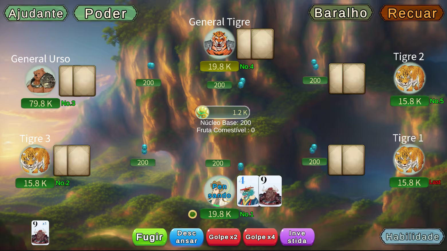Cada carta possui sua própria habilidade única, desbloqueada gradualmente conforme você avança pelas fases, com cargas de uso obtidas nas batalhas.