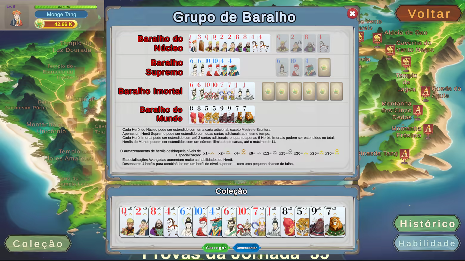 Na parte final da jornada, os jogadores desbloqueiam a personalização do baralho. Expandir e refinar o baralho aumenta a probabilidade de formar combinações preferidas, permitindo vitórias mais estratégicas.