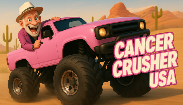 Cancer Crusher USA is a fast-paced 2.5D side-scrolling action game where you drive a powerful monster truck across the United States, crushing cancer wherever it appears. The game is built around speed, multitasking, and player skill — easy to pick up, but increasingly intense the better you play.