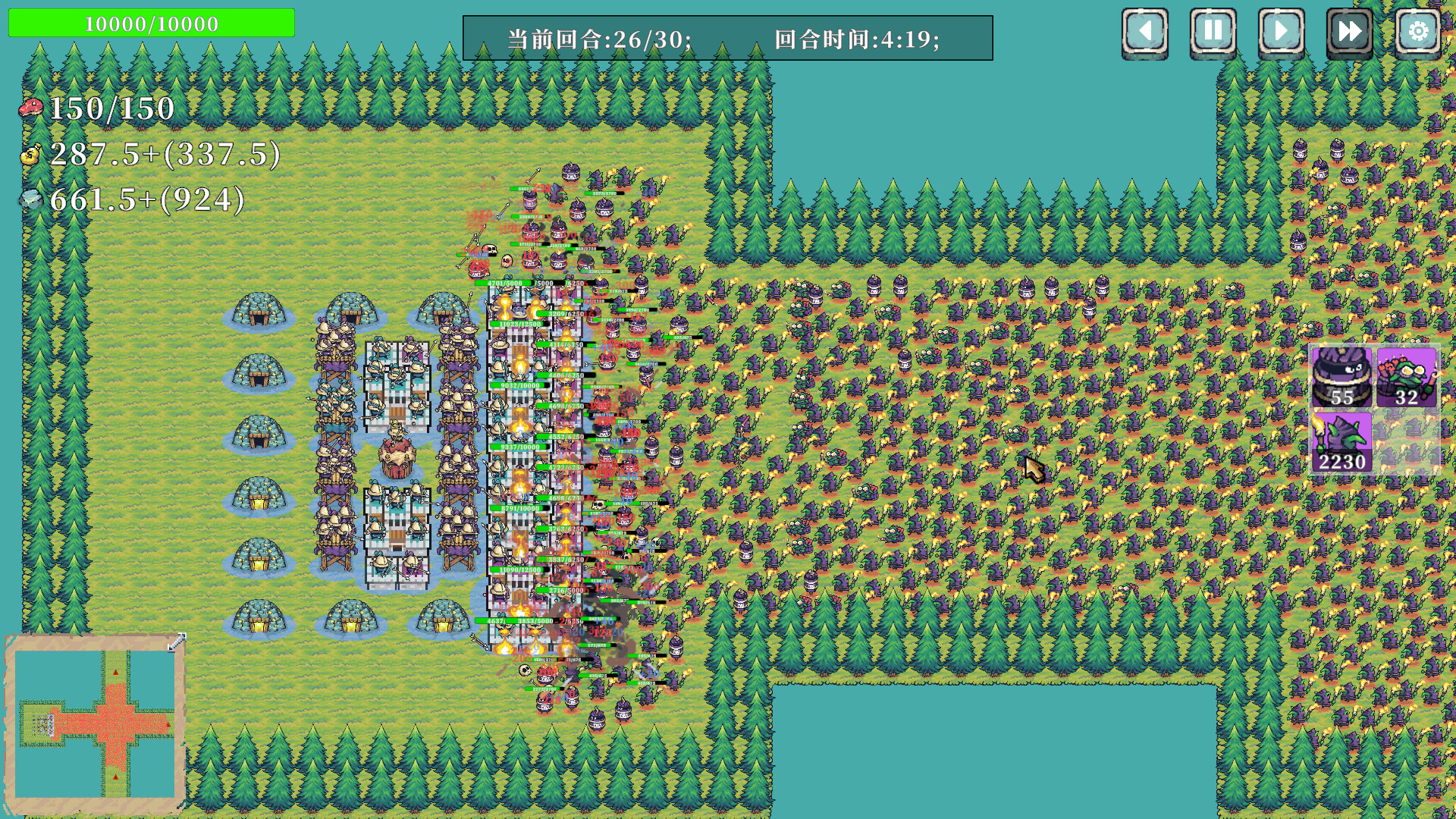 回合制策略:每回合结束后自动结算,商场刷新可购买的资源与兵种,也可手动消耗金币刷新,策略选择更灵活。