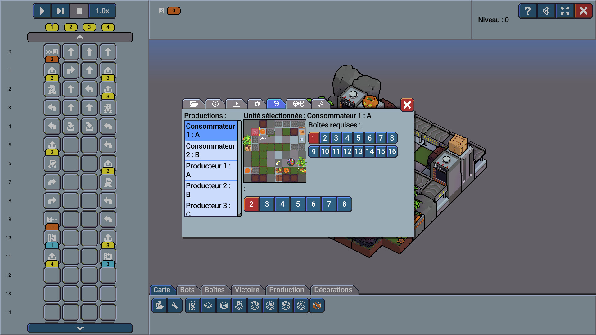 8-bitBot est un jeu de puzzle de programmation où tu places de simples instructions dans un programme pour que tes robots transportent des objets dans un environnement d’usine.