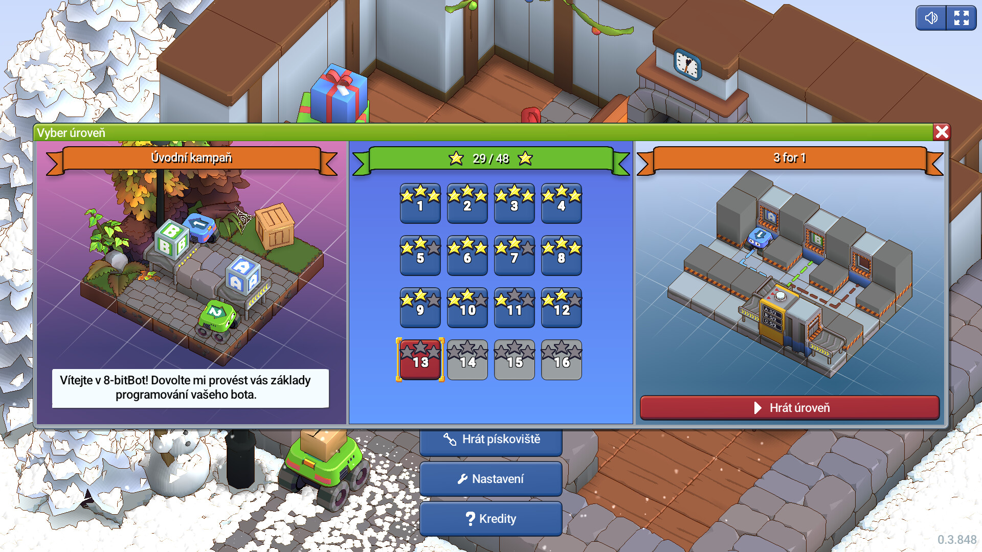 8-bitBot je programovací logická hra, ve které skládáš jednoduché příkazy do programu, aby roboti přenášeli objekty v továrním prostředí.