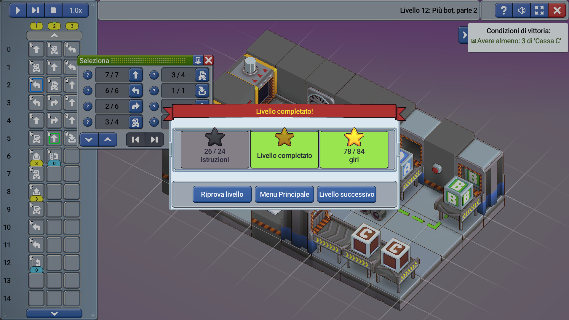 8-bitBot è un gioco puzzle di programmazione in cui inserisci semplici istruzioni in un programma per far trasportare oggetti ai tuoi bot in un ambiente industriale.