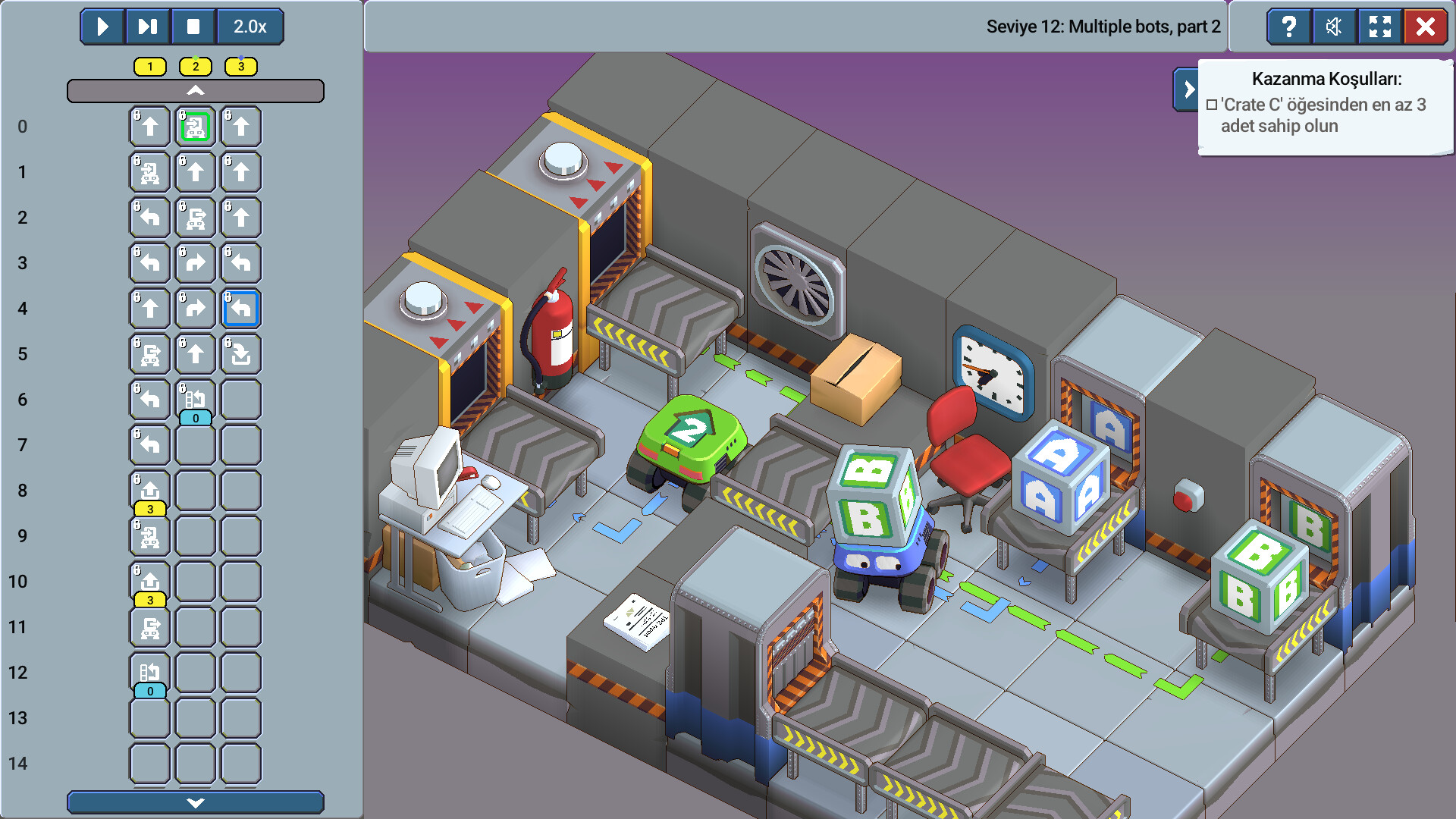8-bitBot, botlarının fabrika ortamında nesneleri taşımasını sağlamak için programa basit komutlar yerleştirdiğin bir programlama bulmaca oyunudur.