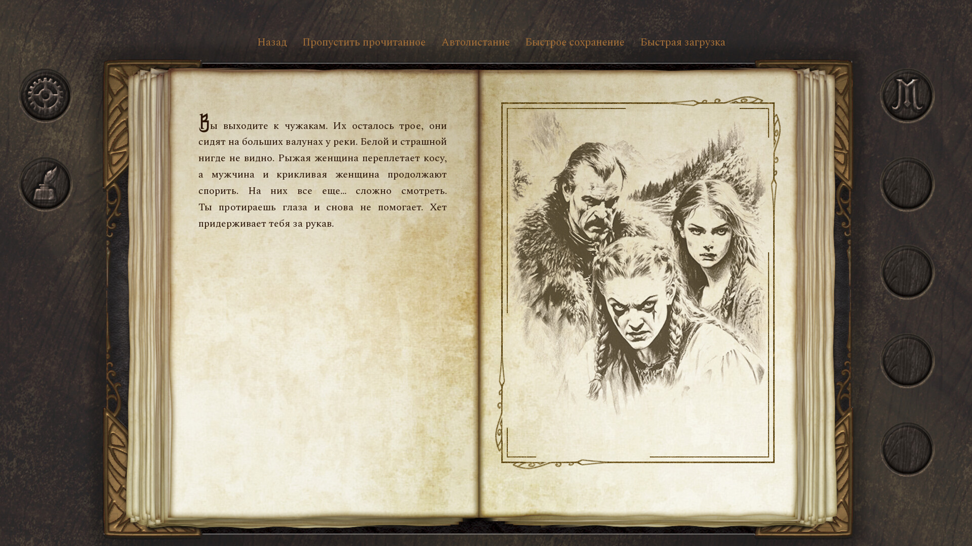 The game is framed as a fictionalized biography of the protagonist. You will know his story from birth to the climactic point of his life when he had faced the Arrival. This account of Morar's life is divided into several chapters, each describing a period of Morar’s life. The first chapter is about his early childhood spent in an isolated pagan commune far from civilization. The second chapter starts with him being taken to a grand city. In this new world Morar must start his journey to adolescence… Each chapter contains numerous quests, which you must resolve by making a choice. Every quest offers at least three options to choose from. Consequences of your decisions will bring you to one of several story routes, each showing Morar's story from a different angle.