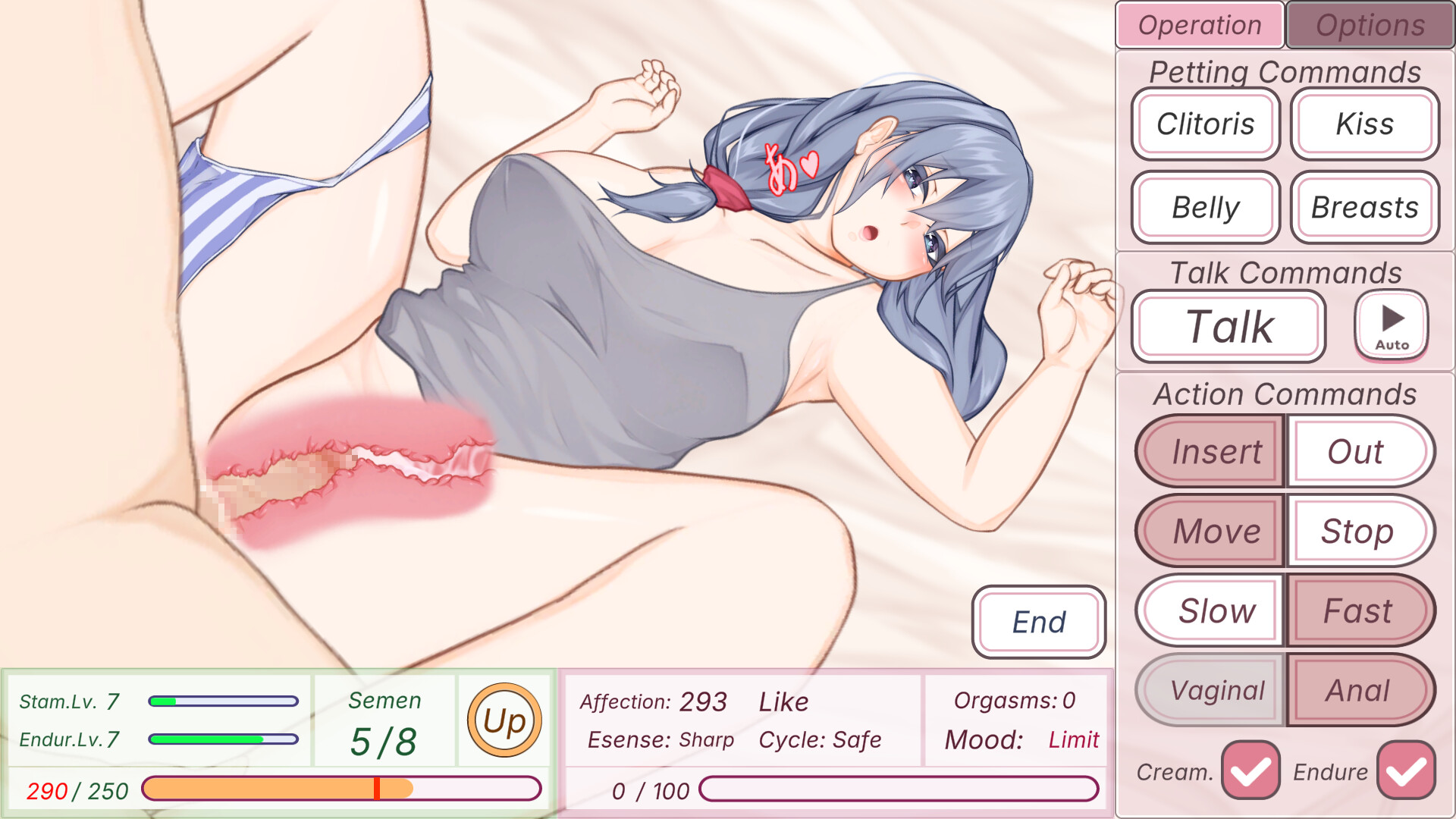 Raise her affection level through [Conversation], [Touching], and [H-scenes], and enjoy all of Umi's various reactions! Umi's responses will change based on her affection level and daily state. As your intimate relationship progresses, you might even be faced with the "responsibilities of a man"!?